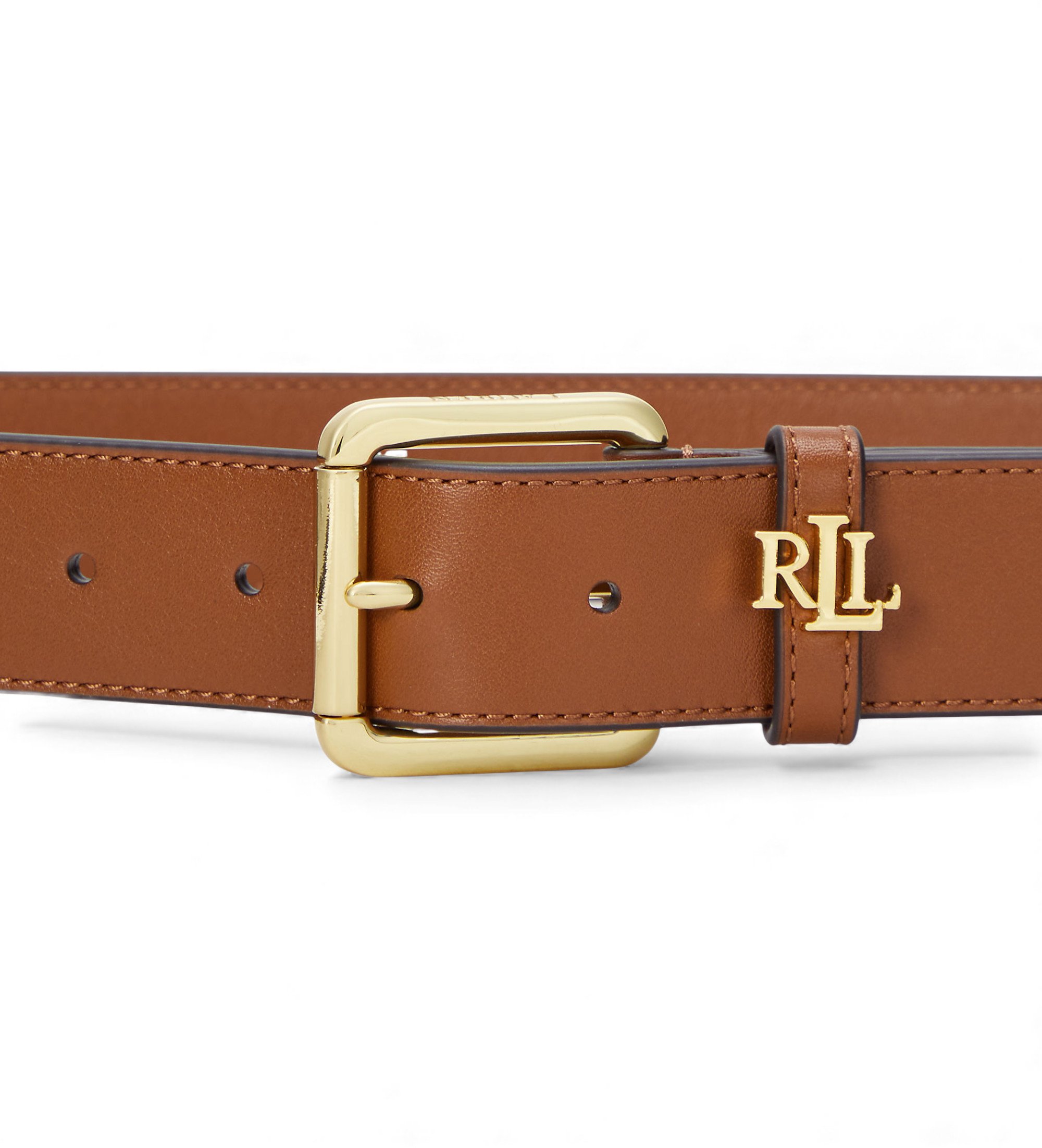 Lauren Ralph Lauren Skórzany pasek z brązową klamrą z logo
