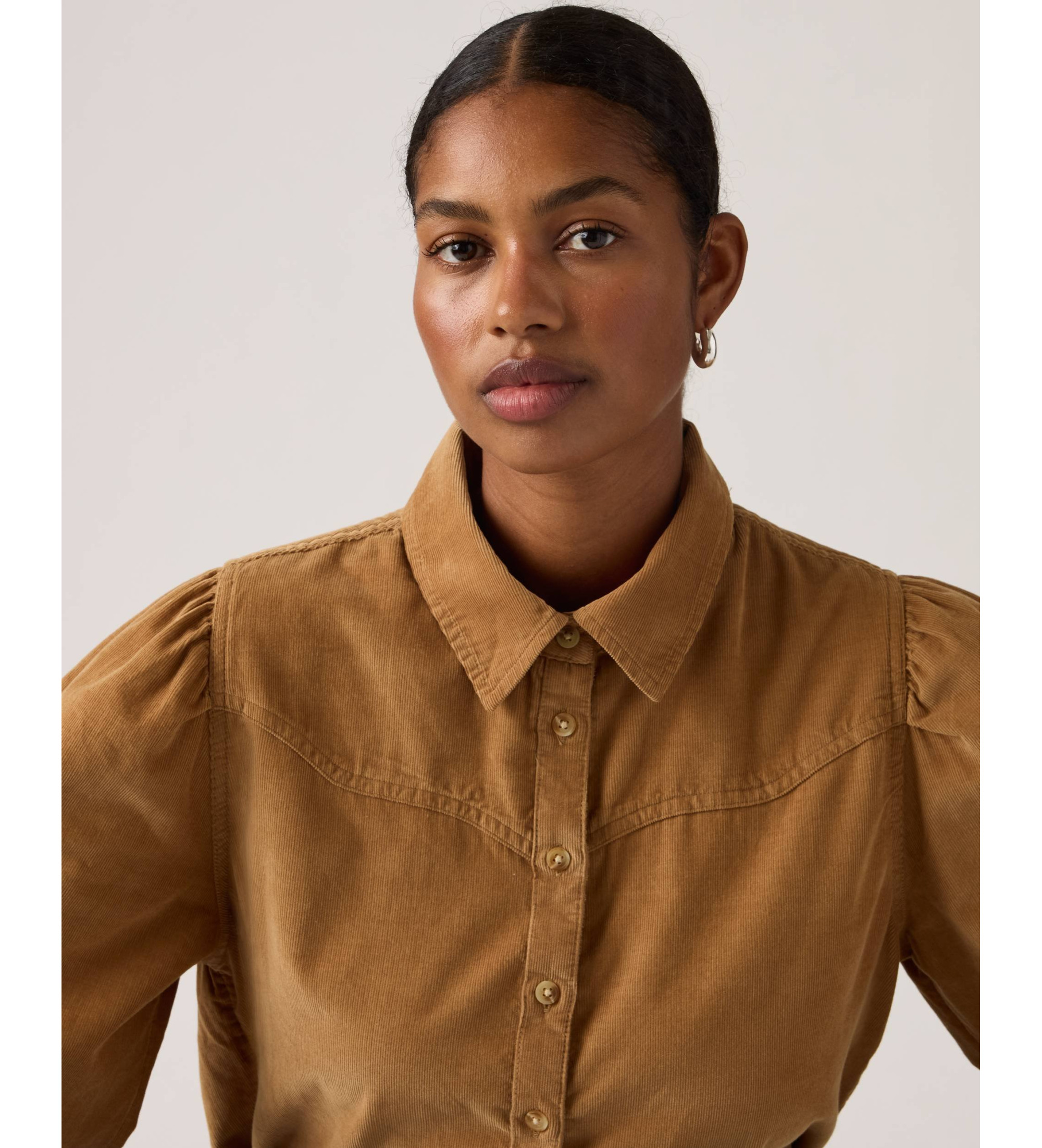 Ponadczasowy styl western łączy się z wygodą sztruksu. Koszula Western Journey Corduroy ma przód zapinany na guziki, westernowe detale na karczku i obszerne rękawy.