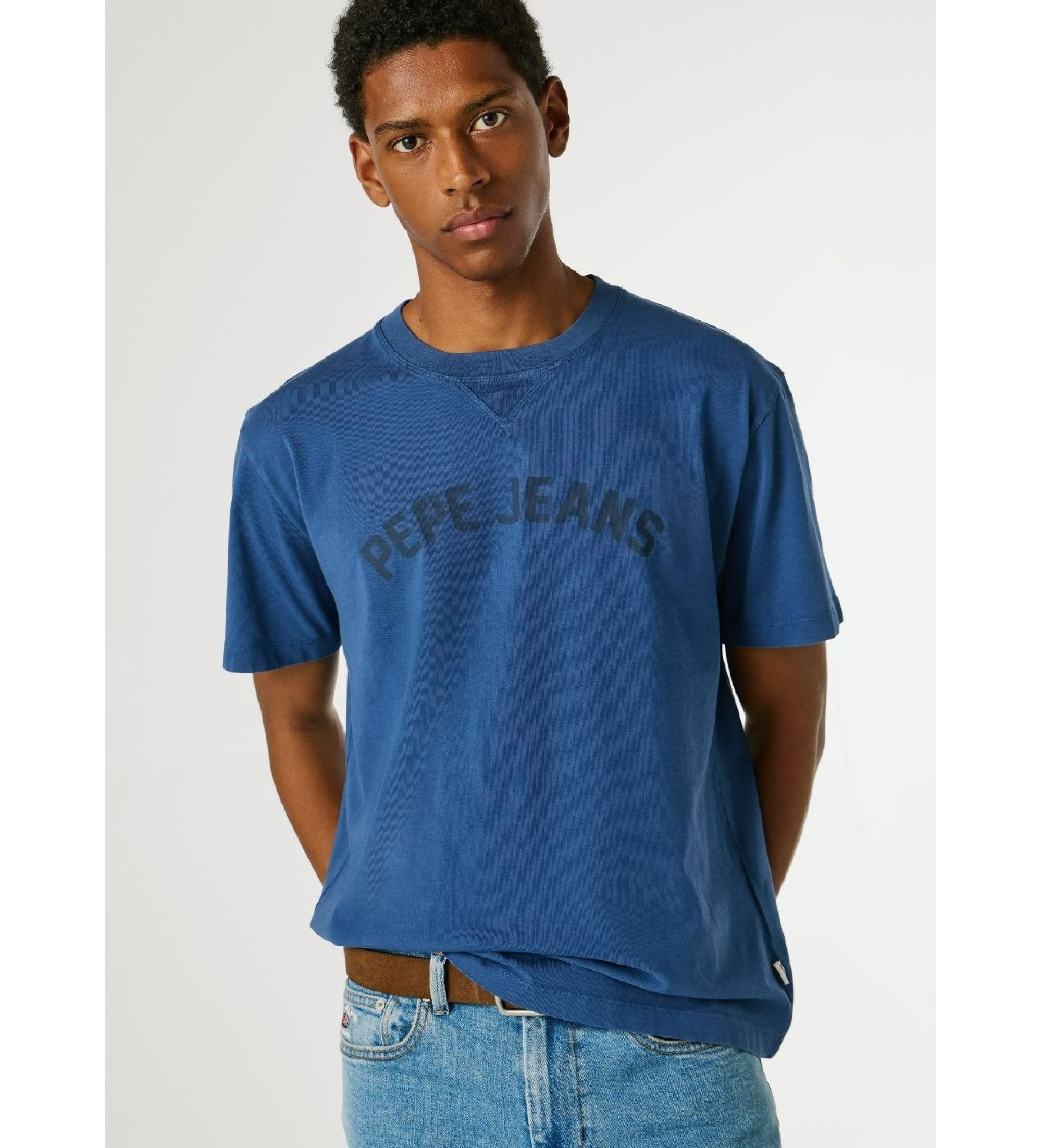 Swobodna koszulka z krótkim rękawem z barwionego pojedynczego dżerseju z nadrukiem z przodu.