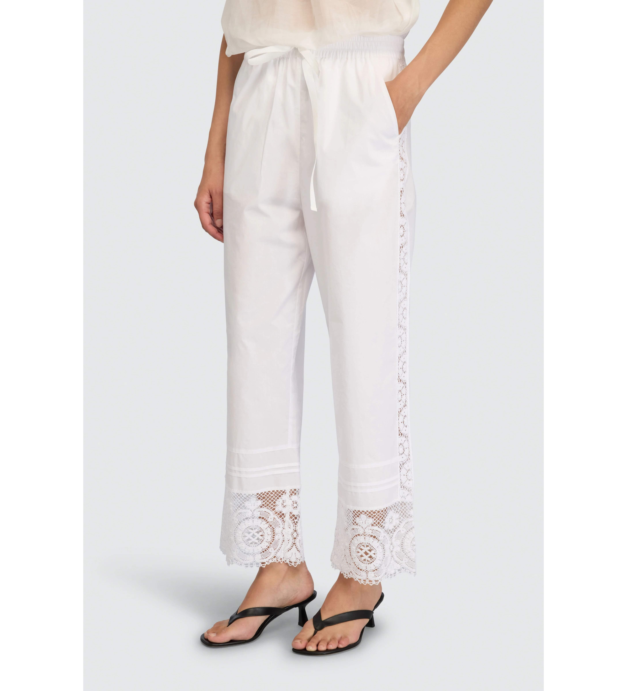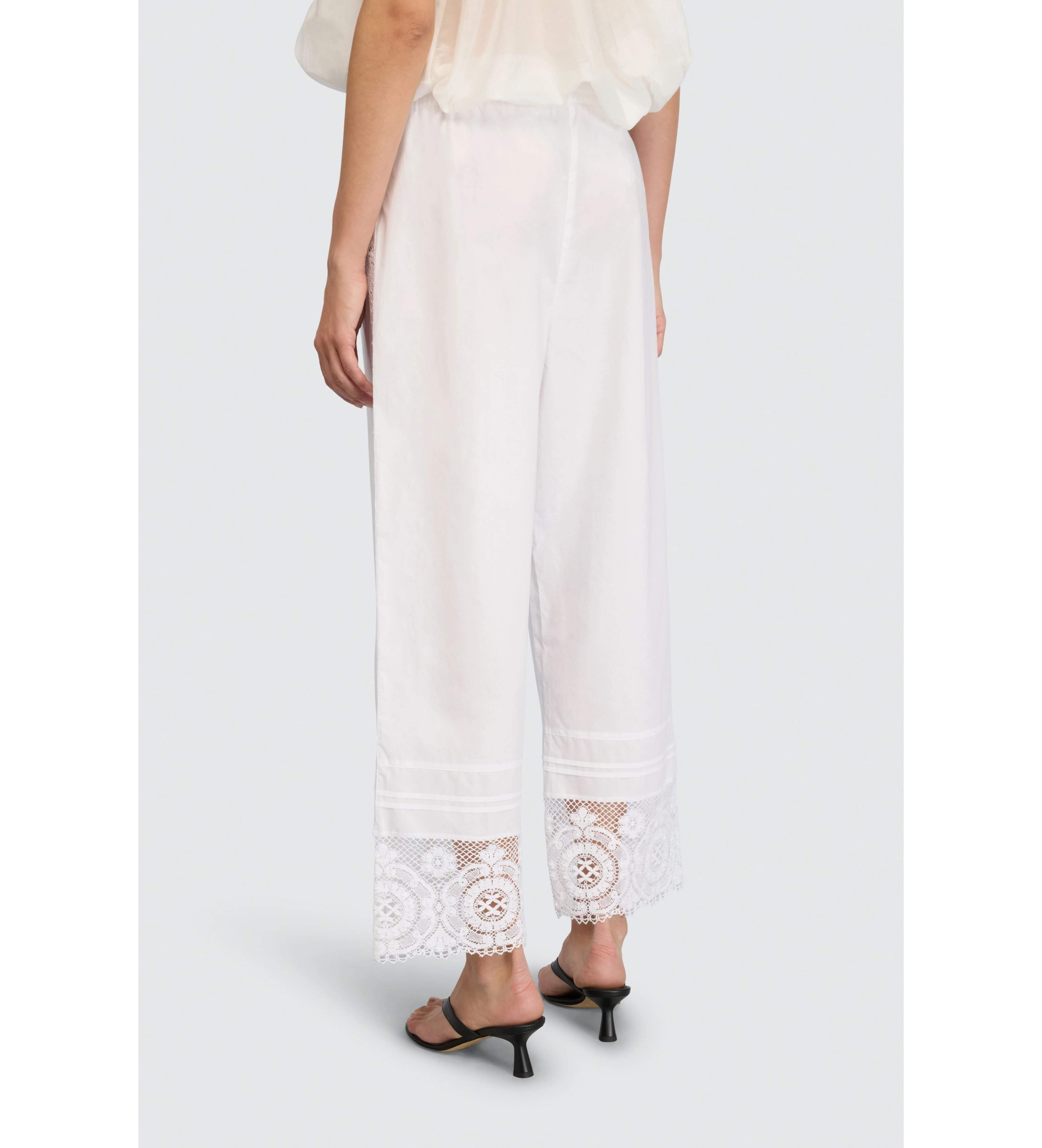 Bawełniane spodnie z popeliny z koronką. Regulowana talia ze sznurkiem, regularny krój nogawek.