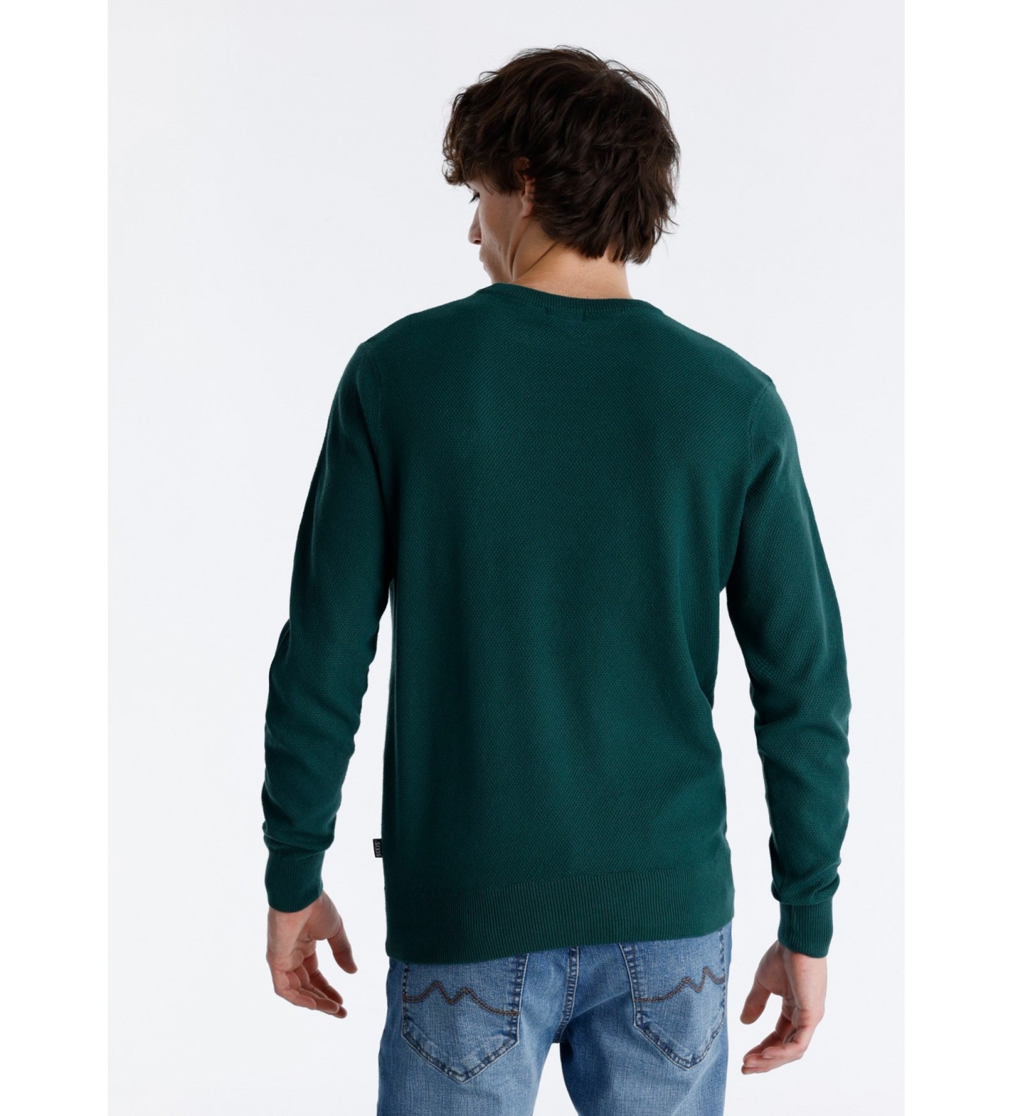 Ten męski sweter wyróżnia się nowoczesnym i stylowym designem z bąbelkowym żakardowym wzorem i okrągłym dekoltem. Wykonany w 100% z bawełny, gwarantuje komfort i przewiewność. Jego świeży i uniwersalny zielony odcień pozwala na wiele kombinacji w swobodnych strojach, idealnych dla osób poszukujących jakości i stylu w codziennym noszeniu.