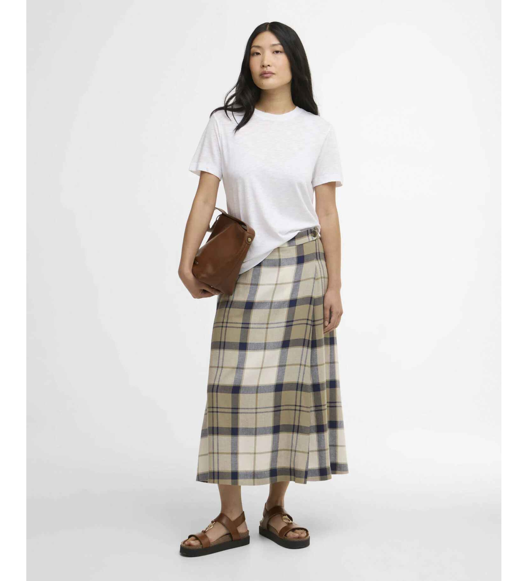 A saia midi Barbour Ballina Tartan dá um toque divertido ao estilo clássico. Com a sua silhueta em A e um design cruzado simulado, este estampado tartan exala elegância sem esforço. Uma fenda frontal acrescenta a quantidade certa de drama, enquanto os bolsos laterais e os botões falsos de chifre lhe dão um toque clássico e funcional. Com um fecho de correr atrás e uma etiqueta distintiva, é o modelo perfeito para adicionar um estampado apelativo a qualquer conjunto.