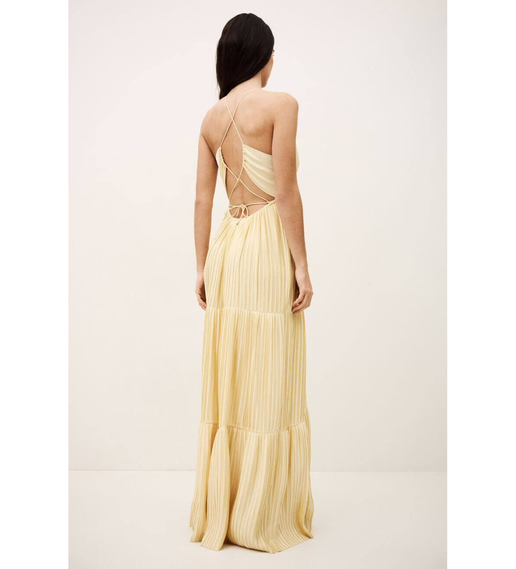 O vestido WASTA é um modelo entre o maxi e o midi. A sua inspiração no modelo WAXA é inconfundível, com uma prega extra que faz toda a diferença. Este vestido é muito glamoroso, o seu decote em V profundo elevado pelo aro do peito é o exemplo mais deslumbrante. As alças são finas e jogam com o laço nas costas para um efeito sensual notável. Vai adorar a cintura elástica que garante um conforto total e um apoio perfeito para o seu vestido. Combine-o com sandálias!