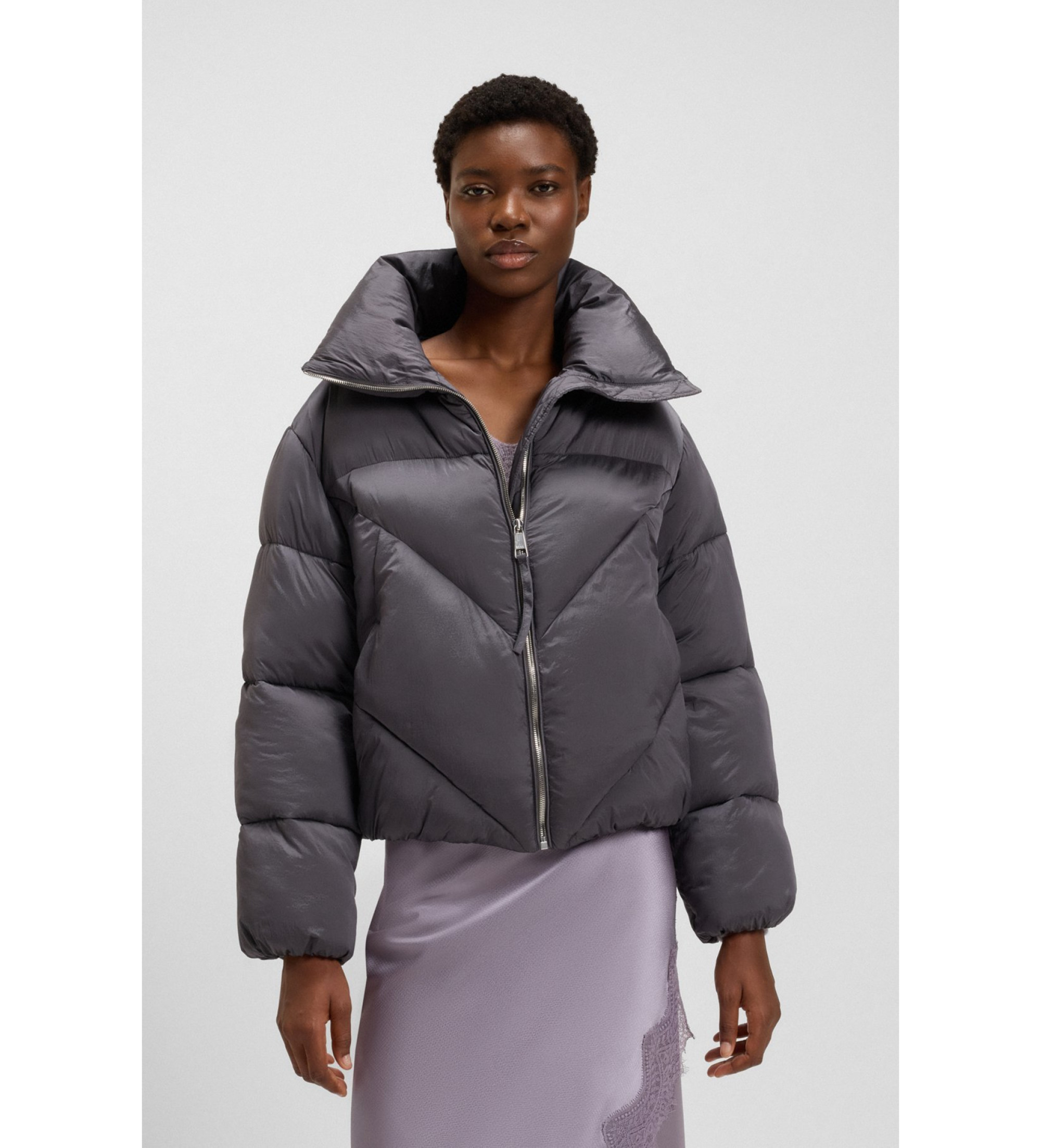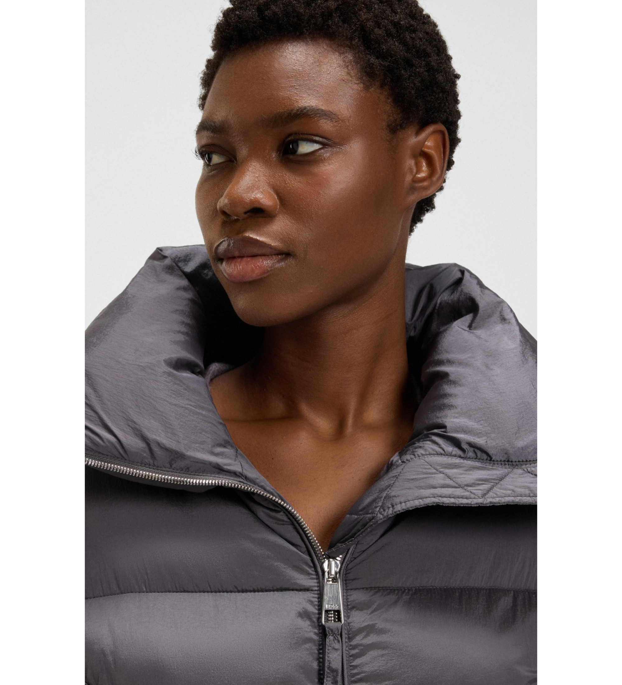 Agasalhe-se para o inverno com este casaco acolchoado da BOSS Womenswear em tecido acolchoado brilhante. Logótipo bordado em tons. Bolsos forrados a lã. Fecho de correr.
