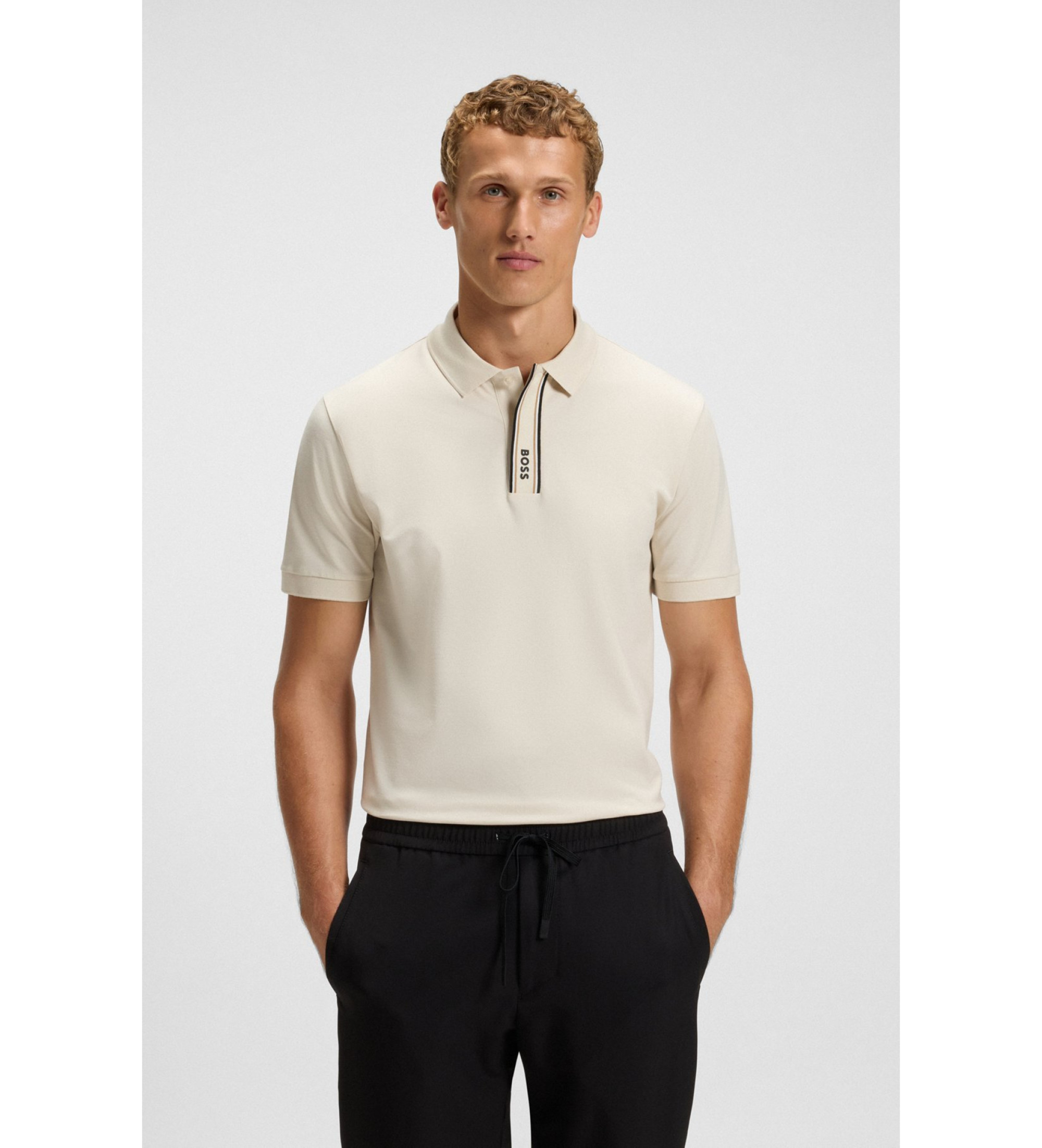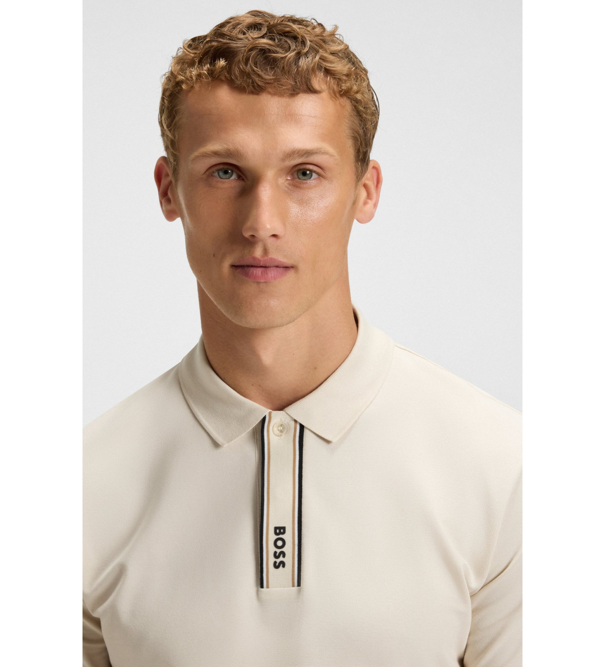 Este pólo BOSS Menswear em algodão multi-stretch para um conforto ativo também oferece propriedades de gestão da humidade. Corte direito. Riscas e logótipo na carcela.