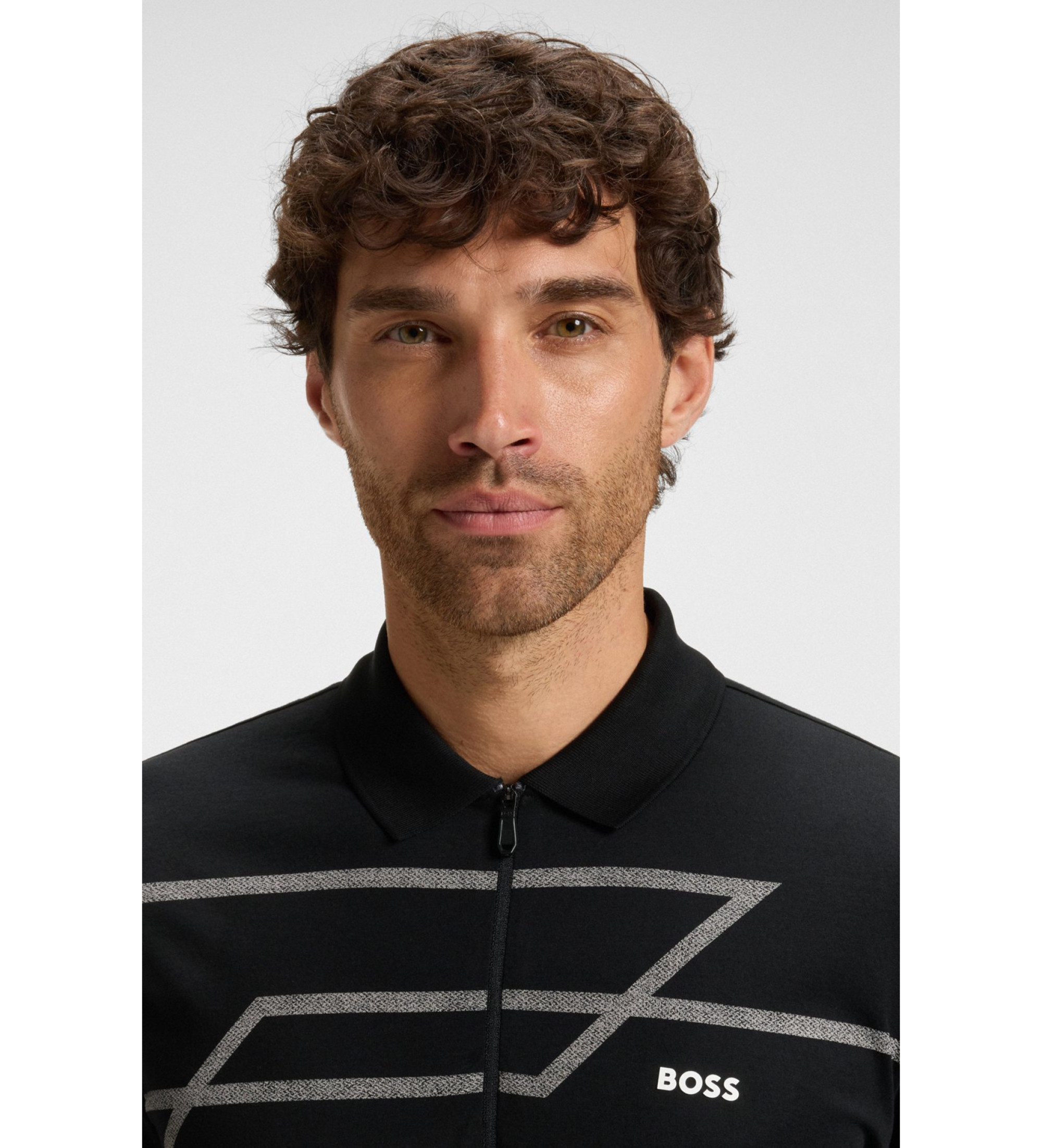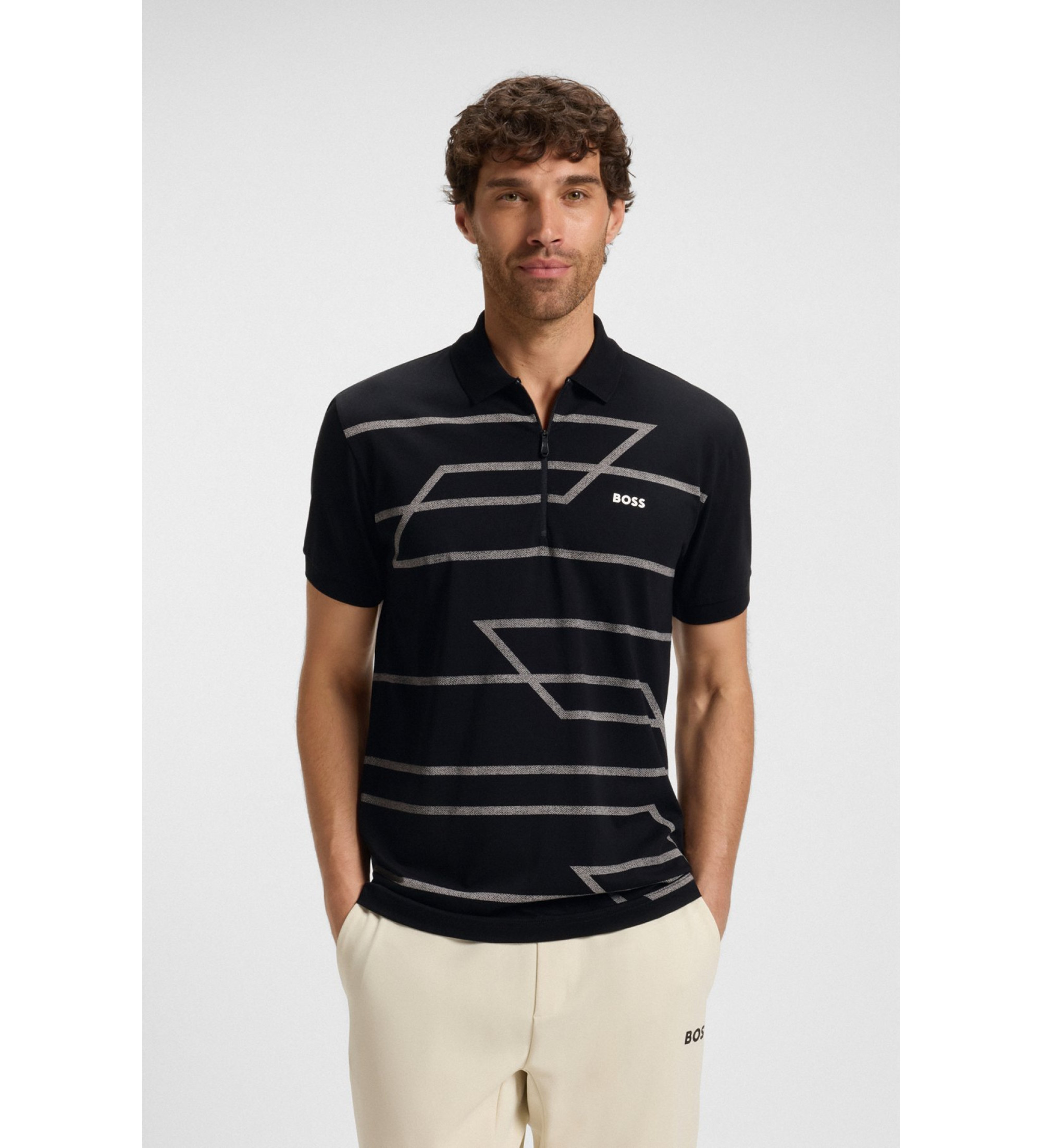Com um estampado marl dinâmico, este pólo da BOSS Menswear é uma excelente escolha para dias activos. Camisola de algodão de secagem rápida. Bolso com fecho de correr. Corte justo.