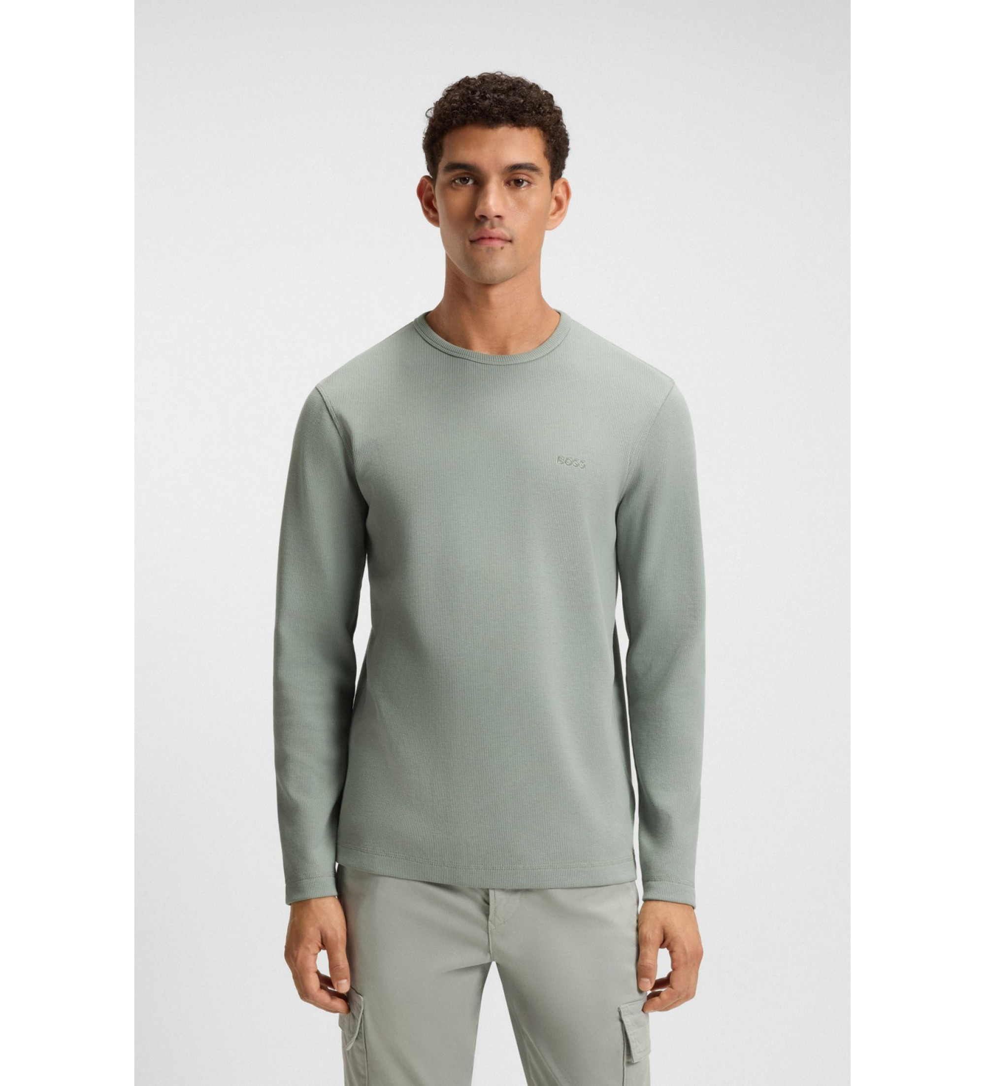 Ideal para usar em camadas, esta T-shirt BOSS Menswear de ajuste regular é confeccionada em tecido waffle elástico com um elevado teor de algodão. É finalizada com um subtil logótipo bordado.