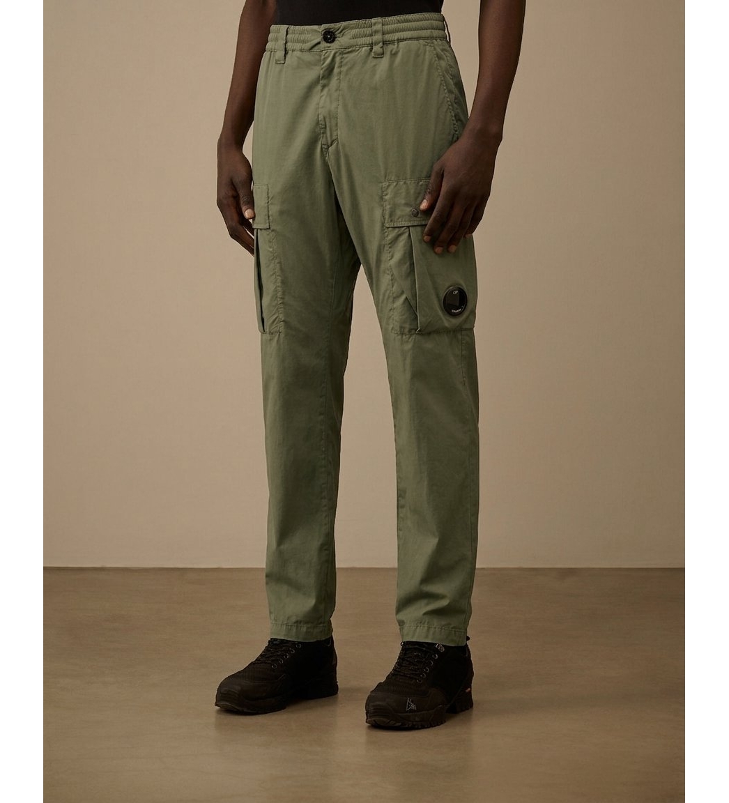 Calças cargo em 50 Fili Stretch, uma evolução do icónico tecido de nylon/algodão da CP Company, atualizado com nylon elástico para maior conforto e flexibilidade. O estilo apresenta uma cintura com cordão ajustável, fecho de botão e fecho de correr e presilhas para o cinto. O design é completado com bolsos laterais, bolsos de carga com aba com fechos de mola, a lente icónica da CP Company e um bolso traseiro com fecho de mola e etiqueta do logótipo. A peça de vestuário é tingida para obter uma intensidade de cor única que se intensifica com o tempo e o uso. Ajuste regular.