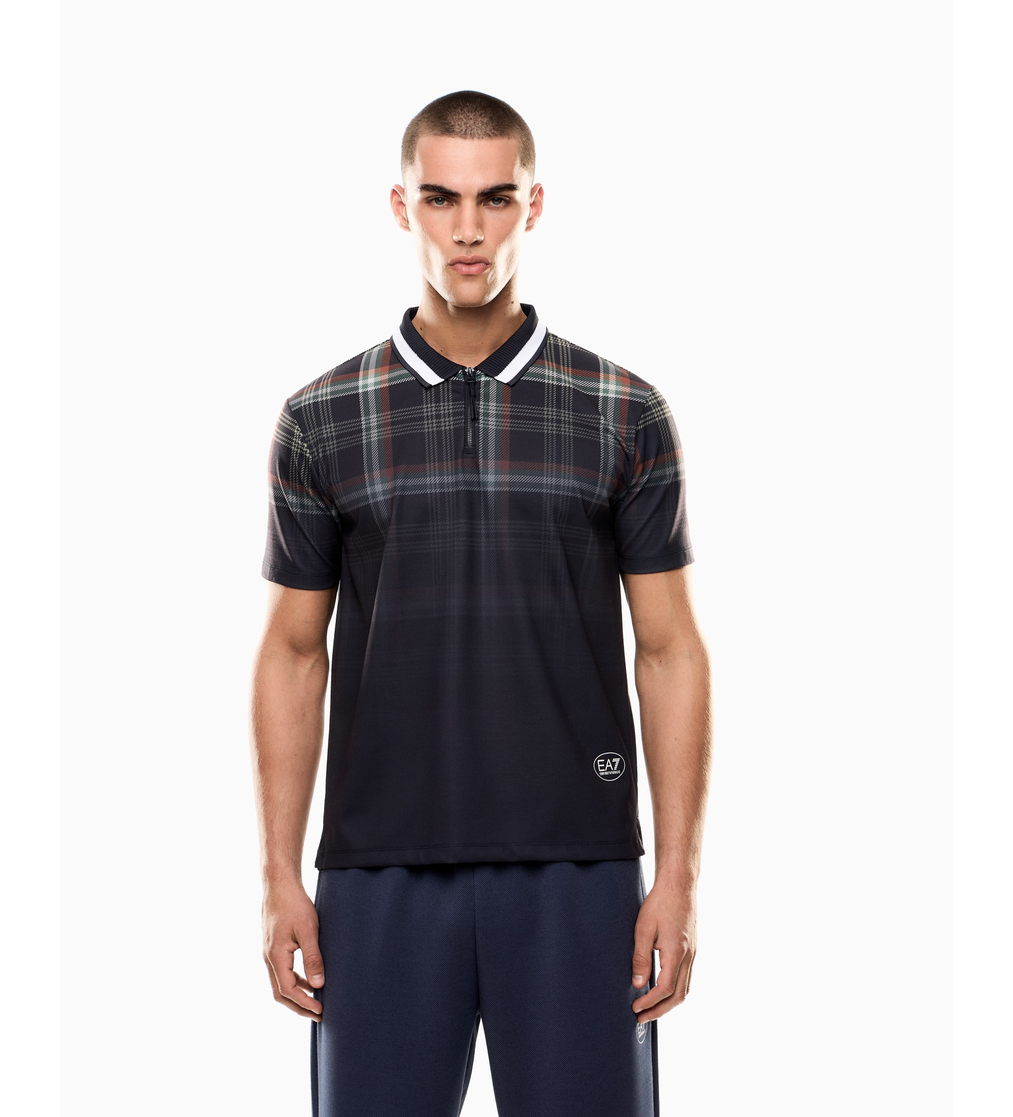 Pólo de manga curta em tecido técnico elástico. Com fecho de correr a três quartos e personalização do logótipo EA7 em contraste, o modelo é adornado com um padrão axadrezado com efeito gradiente. Clássica, elegante e minimalista: a seleção Golf Club oferece peças em tecidos confortáveis e respiráveis numa paleta neutra e extremamente versátil, combinando os modelos para os jogos. Peças sofisticadas, perfeitas para um almoço ou um aperitivo no clube depois de um dia no green.