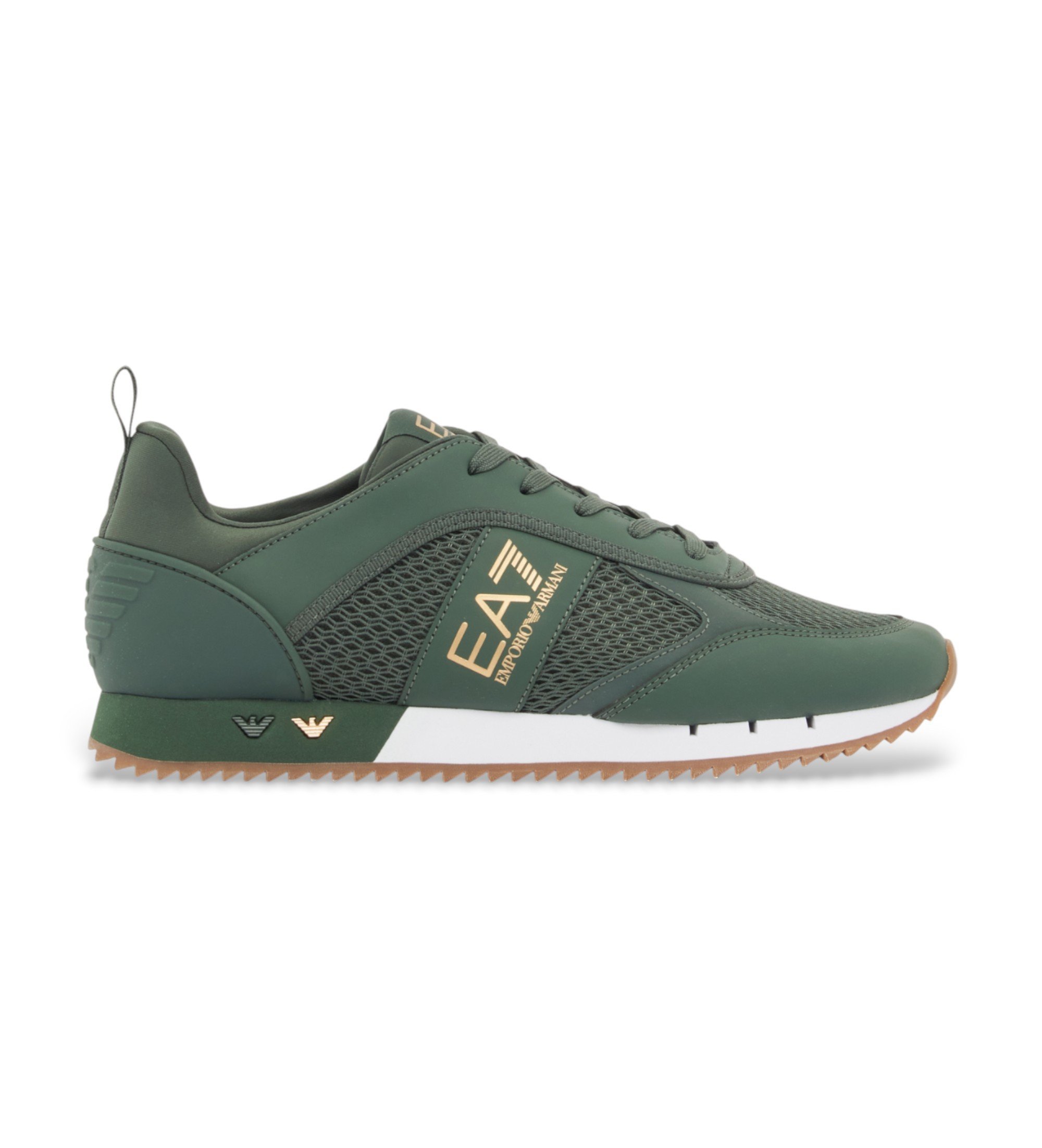 Estas sapatilhas EA7 unissexo são o complemento perfeito para um estilo de vida ativo. Fabricadas com uma parte superior em malha e detalhes em lycra, apresentam o icónico logótipo EA7 no quarto lateral. O design apresenta águias metálicas na sola intermédia e uma águia em relevo na aba do calcanhar, acrescentando um toque distinto e sofisticado. A construção centra-se numa composição de várias camadas de poliéster e poliuretano, garantindo durabilidade e conforto a cada passo. Perfeitos para um look casual e moderno, ideal para qualquer aventura urbana.