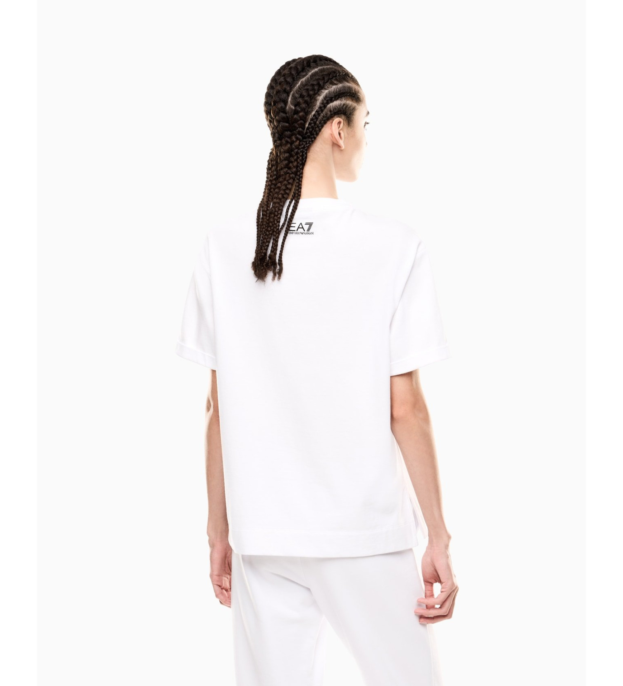 A verdadeira estrela desta T-shirt em malha de algodão puro é o maxilogótipo EA7 com lantejoulas. Um corte confortável, versátil e adaptável tanto a roupas desportivas como de lazer.