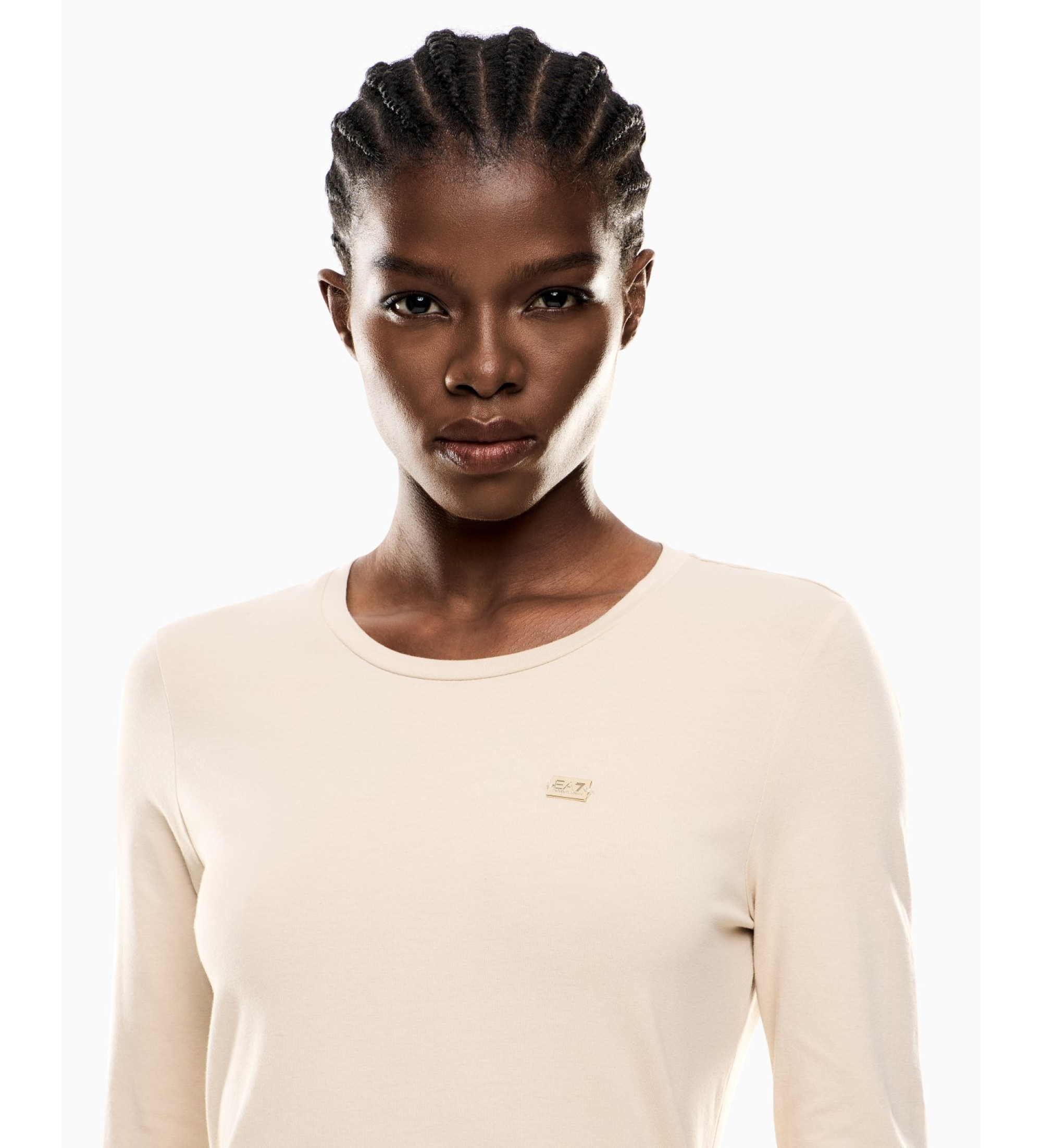 EA7 T-SHIRT DE MANGA COMPRIDA EM MALHA CANELADA BEGE