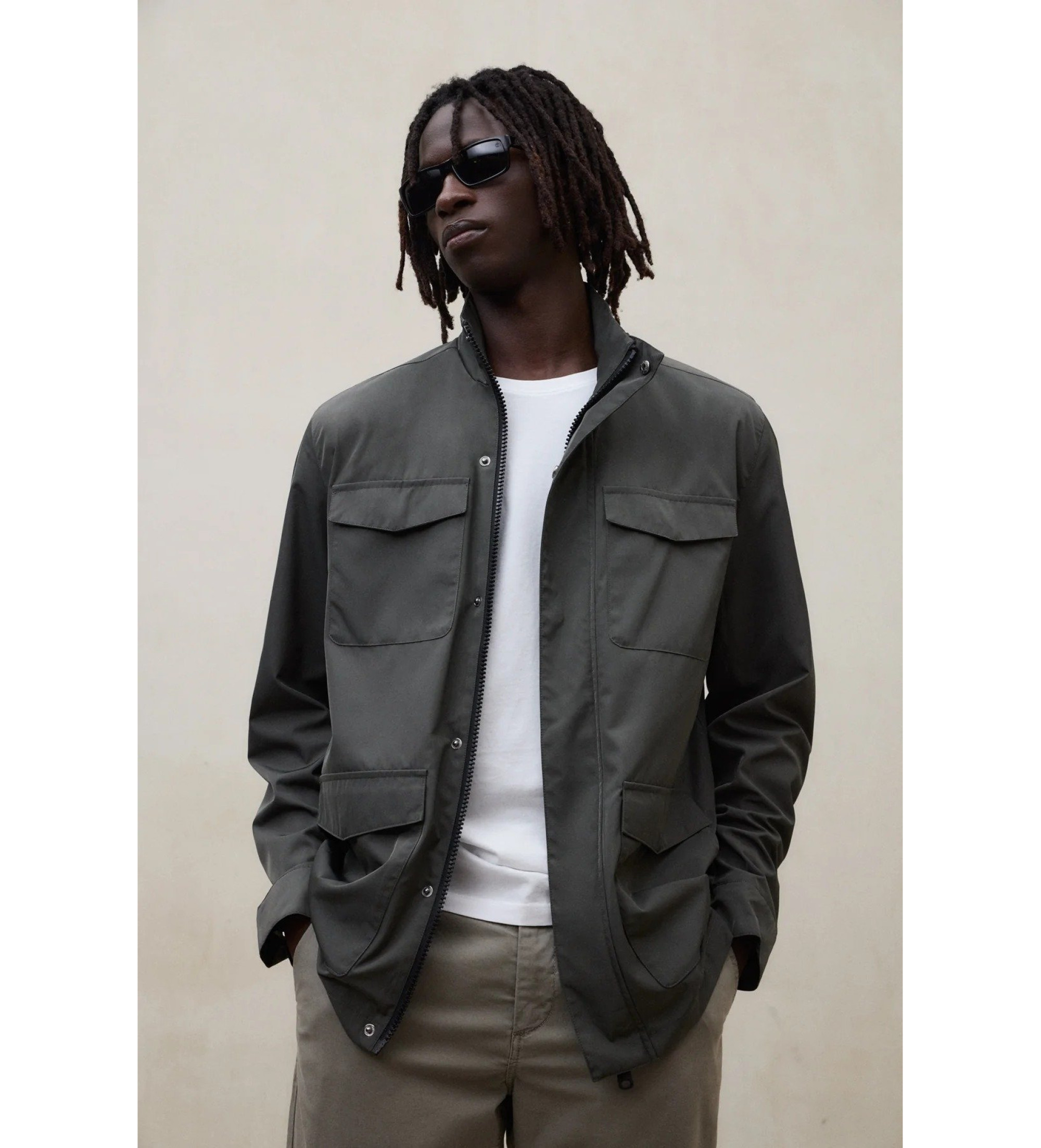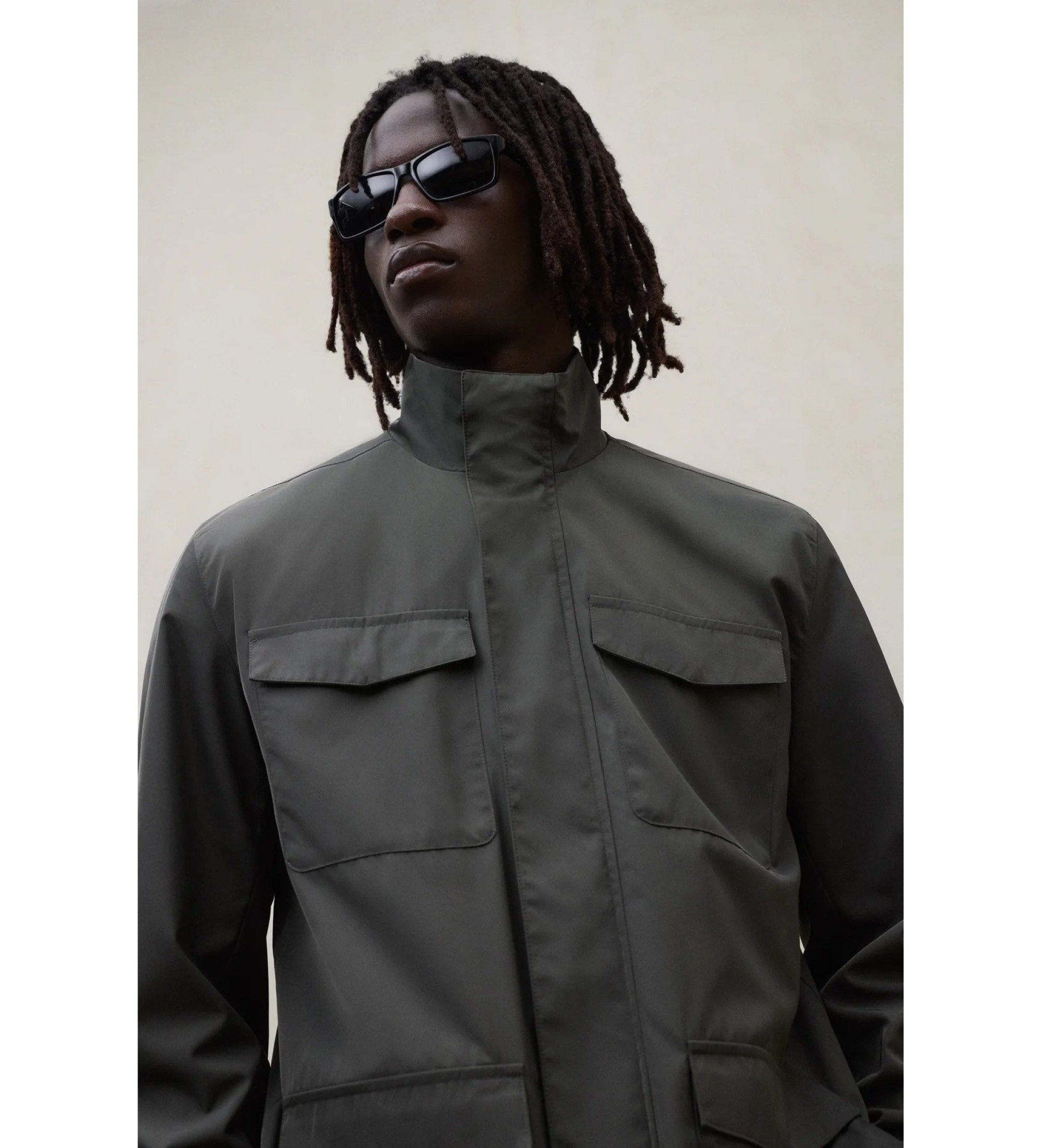 O casaco Aello é fabricado com um tecido principal 100% poliéster reciclado. Ajuste regular. Possui uma gola alta com fecho de pressão, fecho de correr central, bolsos frontais no peito e bolsos inferiores.