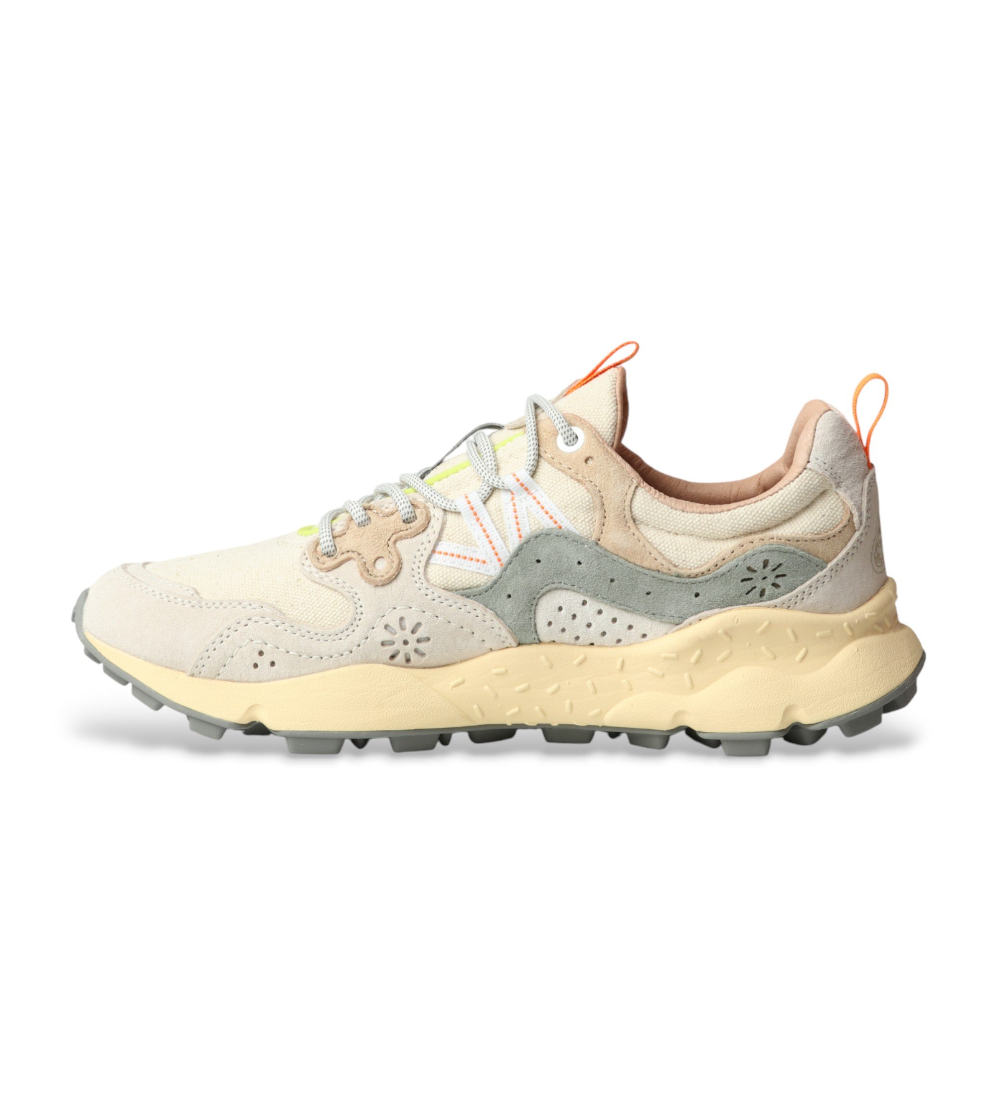 Desportivos e inspirados no ar livre, os ténis Yamano combinam detalhes activos com uma estética moderna - perfeitos também para a cidade. A parte superior em tecido técnico apresenta pormenores em camurça com uma construção de sobreposição distinta, atacadores de trekking e um ilhó floral. A sola é feita de borracha ultra-leve, com uma asa colorida sob o calcanhar e um piso serrilhado. A palmilha de cortiça natural antibacteriana protege o pé e garante conforto durante todo o dia.