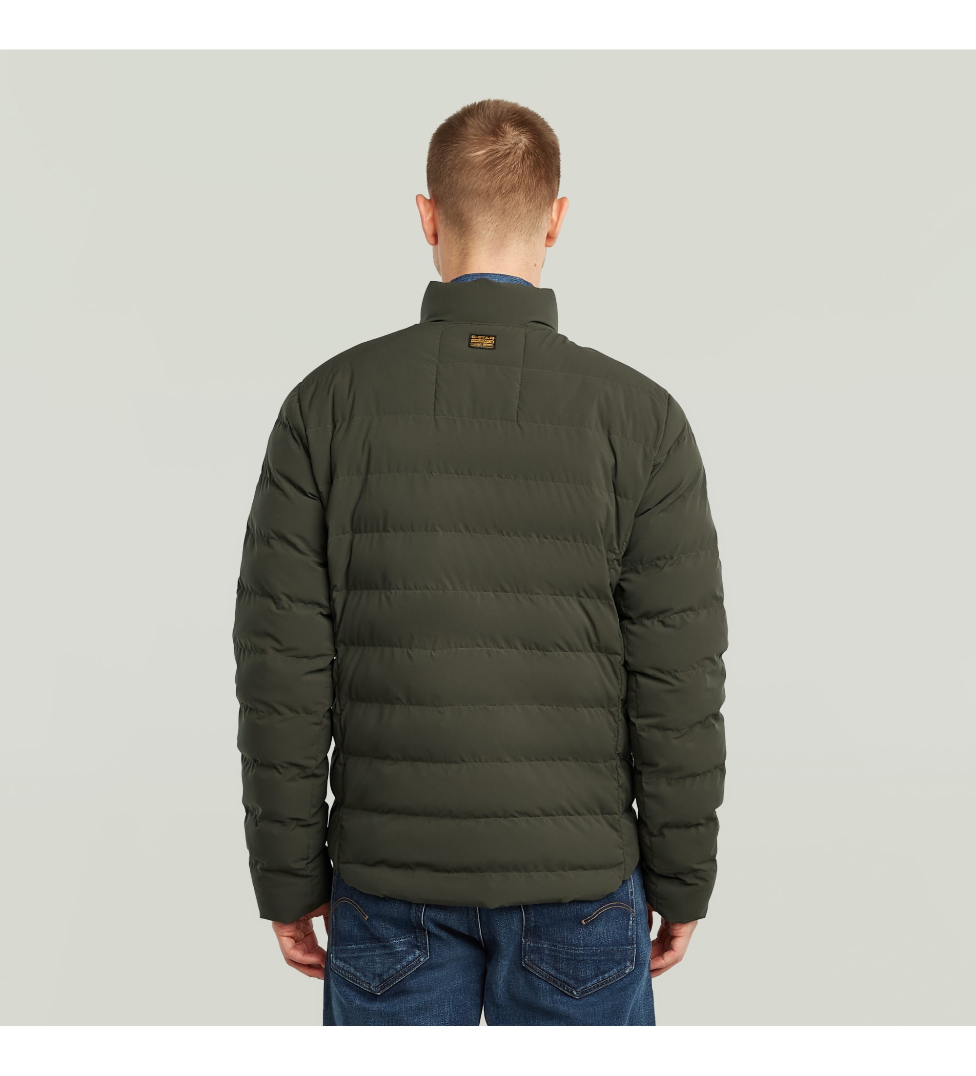 O casaco Foundation Liner é acolchoado e tem costuras horizontais. As mangas são rematadas com um rebordo elástico no interior para impedir a entrada do vento.