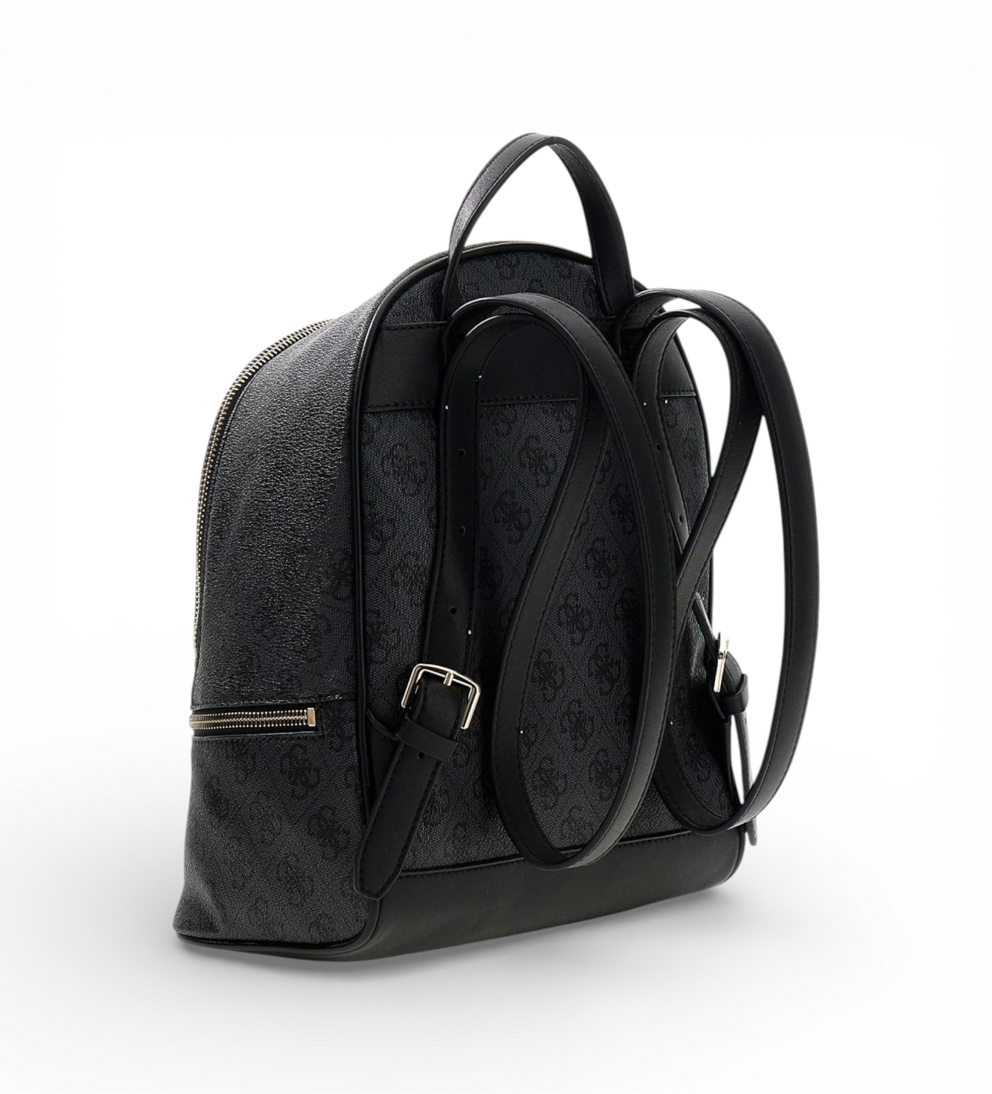 Mochila Follie em pele sintética, concebida para combinar estilo e funcionalidade. Apresenta um fecho de correr, um logótipo triangular metálico à frente e um forro personalizado com o logótipo da marca.