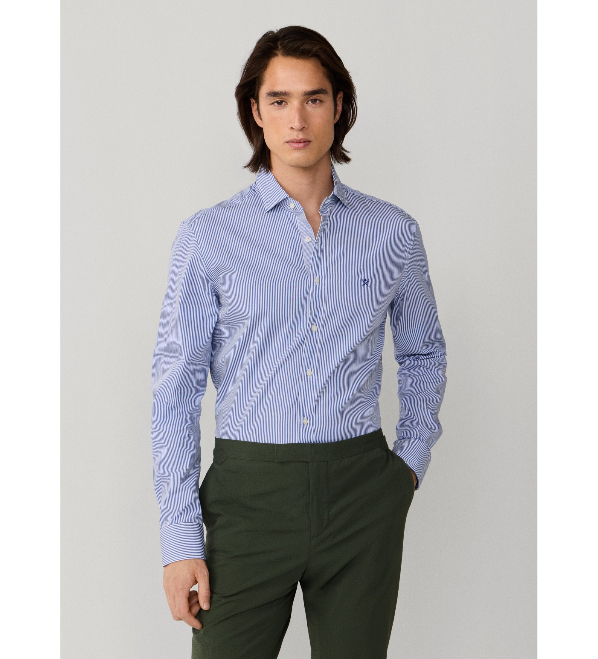 Camisa Hackett London Fit Tailored Tailored, confeccionada em 100% algodão com riscas de Bengala. Um design inteligente e sofisticado, com pormenores distintivos que conferem estilo e personalidade a qualquer visual.