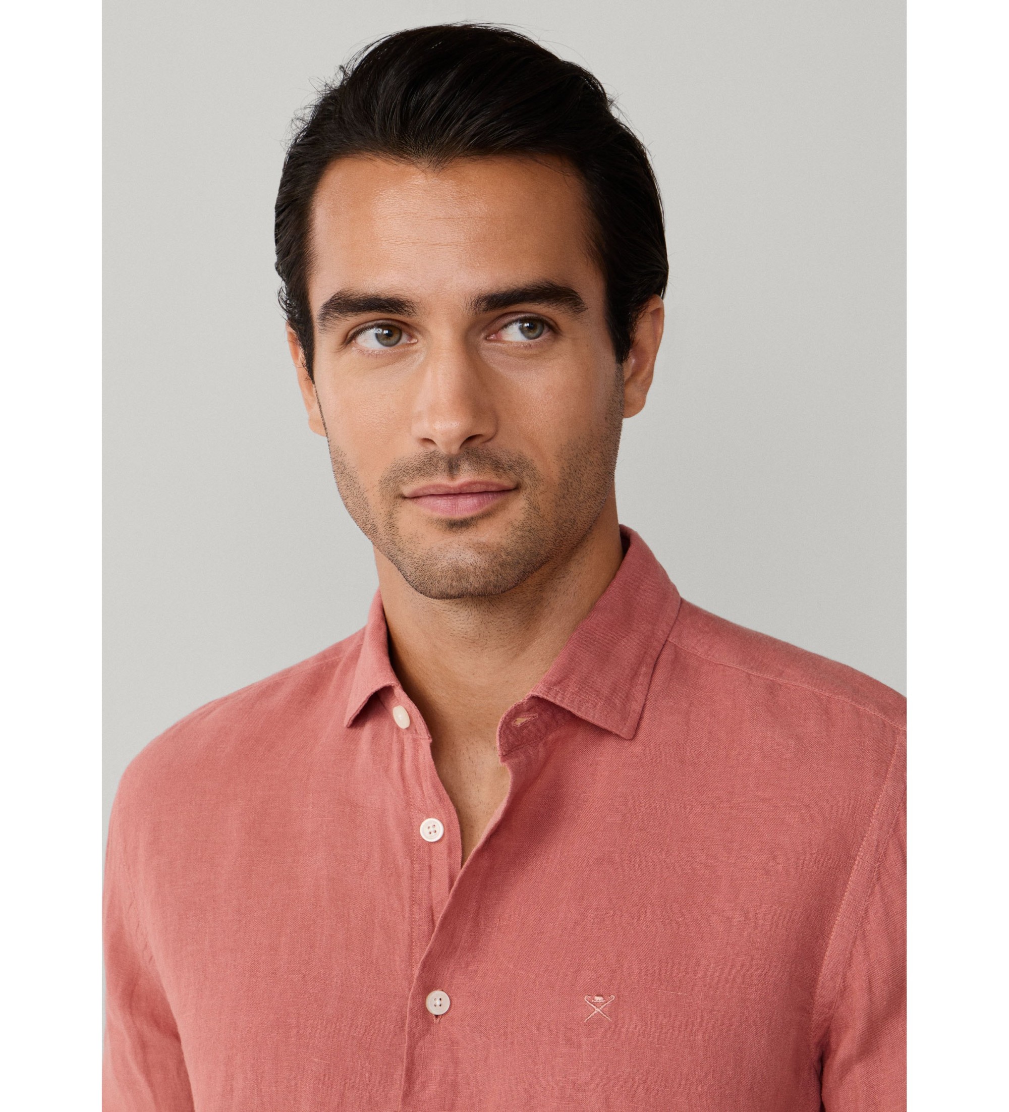 Hackett London CAMISA DE LINHO TINGIDA DE LINHO AJUSTADA POR MEDIDA VERMELHA