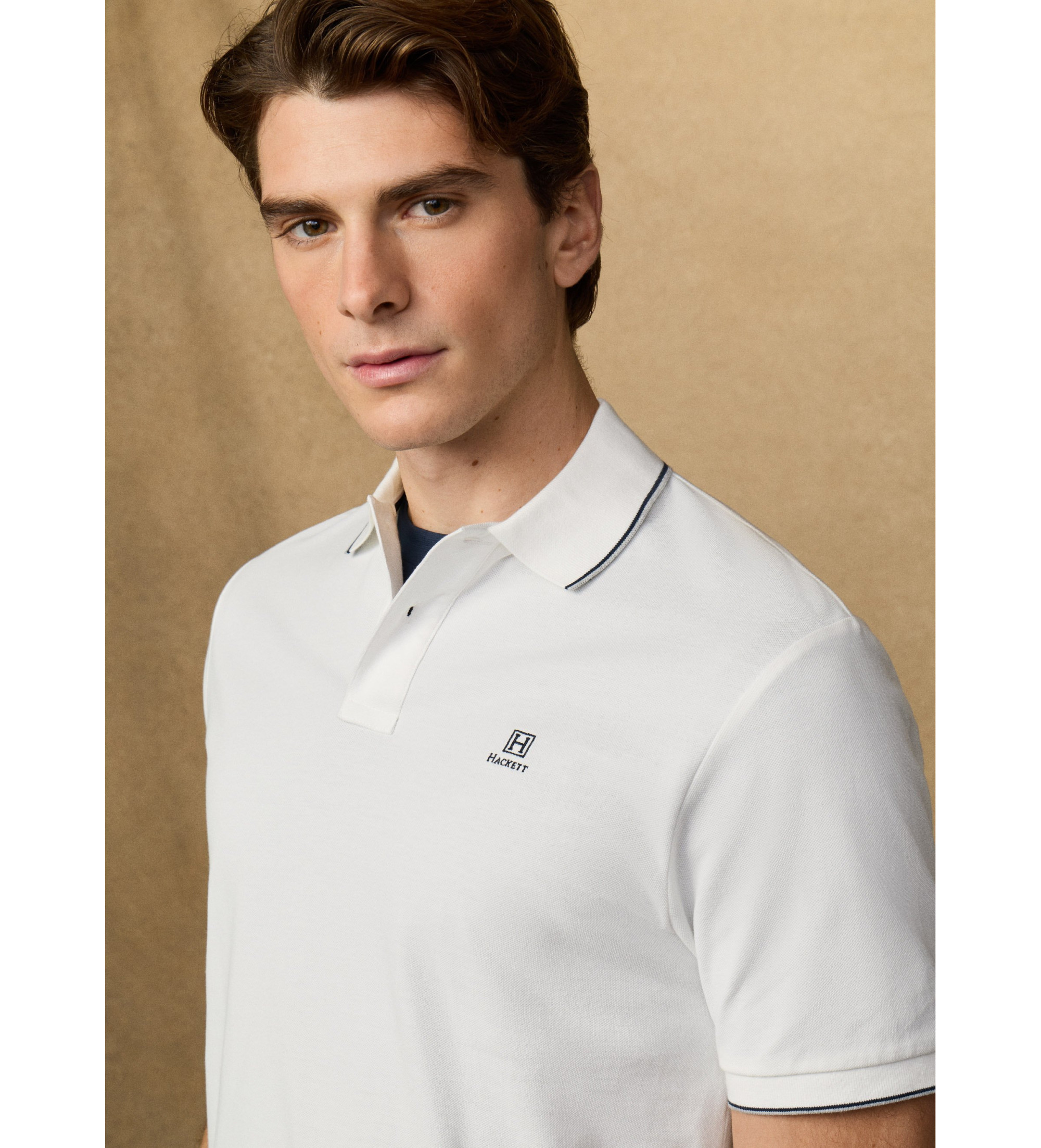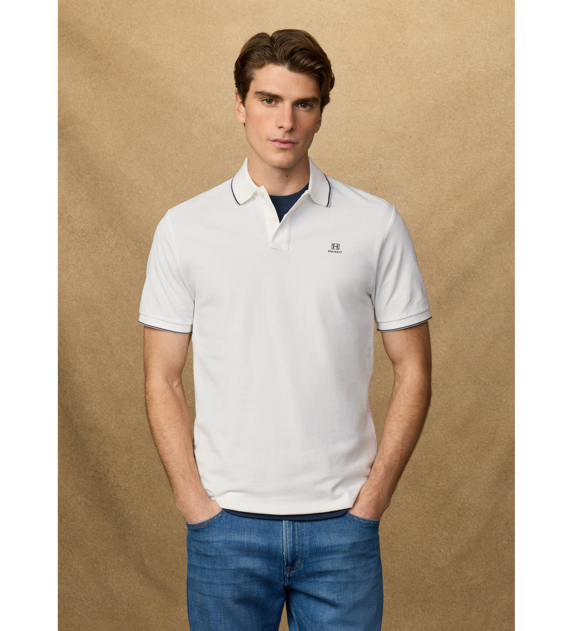 Pólo de manga curta Hackett Heritage com um corte clássico, inspirado na herança da marca e atualizado com detalhes distintos. Confeccionada em piqué 100% algodão, oferece conforto, estrutura e estilo intemporal com referências aos arquivos históricos da Hackett.
