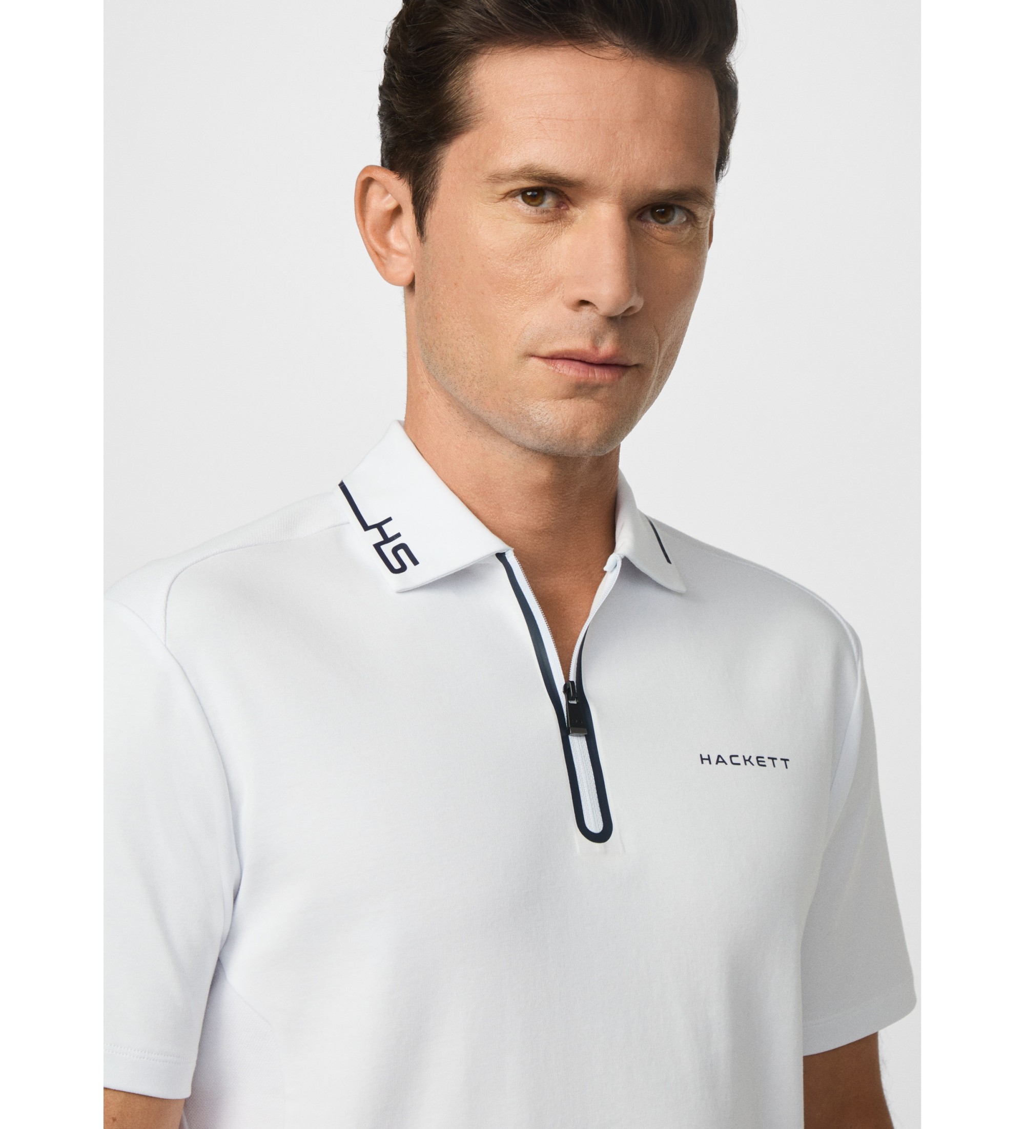 O polo Hackett London Tech é uma peça moderna que combina conforto e estilo. Este pólo é confeccionado principalmente em piqué de algodão elástico, complementado com algodão interlock elástico para um toque suave e flexível, ideal para o uso diário. Apresenta um design técnico com um fecho de correr elegante e um pormenor de fita térmica de cor contrastante à volta do fecho. A impressão de borracha na gola acrescenta um toque distinto, enquanto a aba de metal e o pormenor de borracha no lado esquerdo do peito acrescentam modernidade. Perfeita para quem procura uma peça casual mas sofisticada, esta camisola pólo é essencial para o homem contemporâneo.
