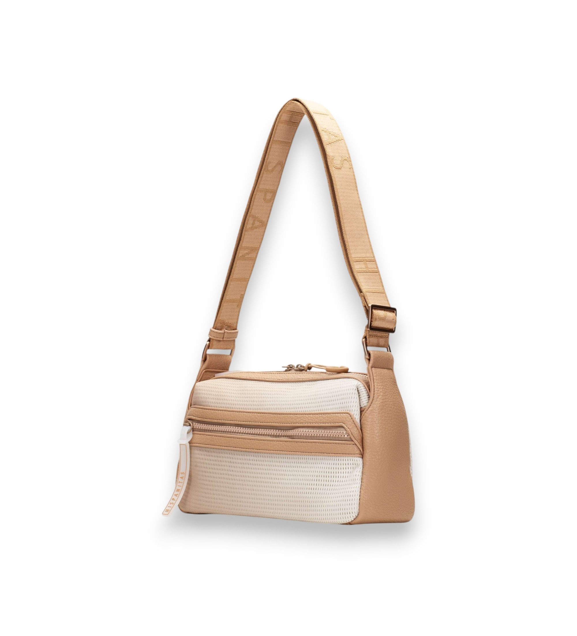 Mala a tiracolo de tamanho médio com um design leve e contemporâneo. Fabricada em malha, tem um estilo fresco e dinâmico, ideal para o dia a dia. O seu interior espaçoso e a alça de ombro ajustável garantem conforto e funcionalidade em cada utilização.