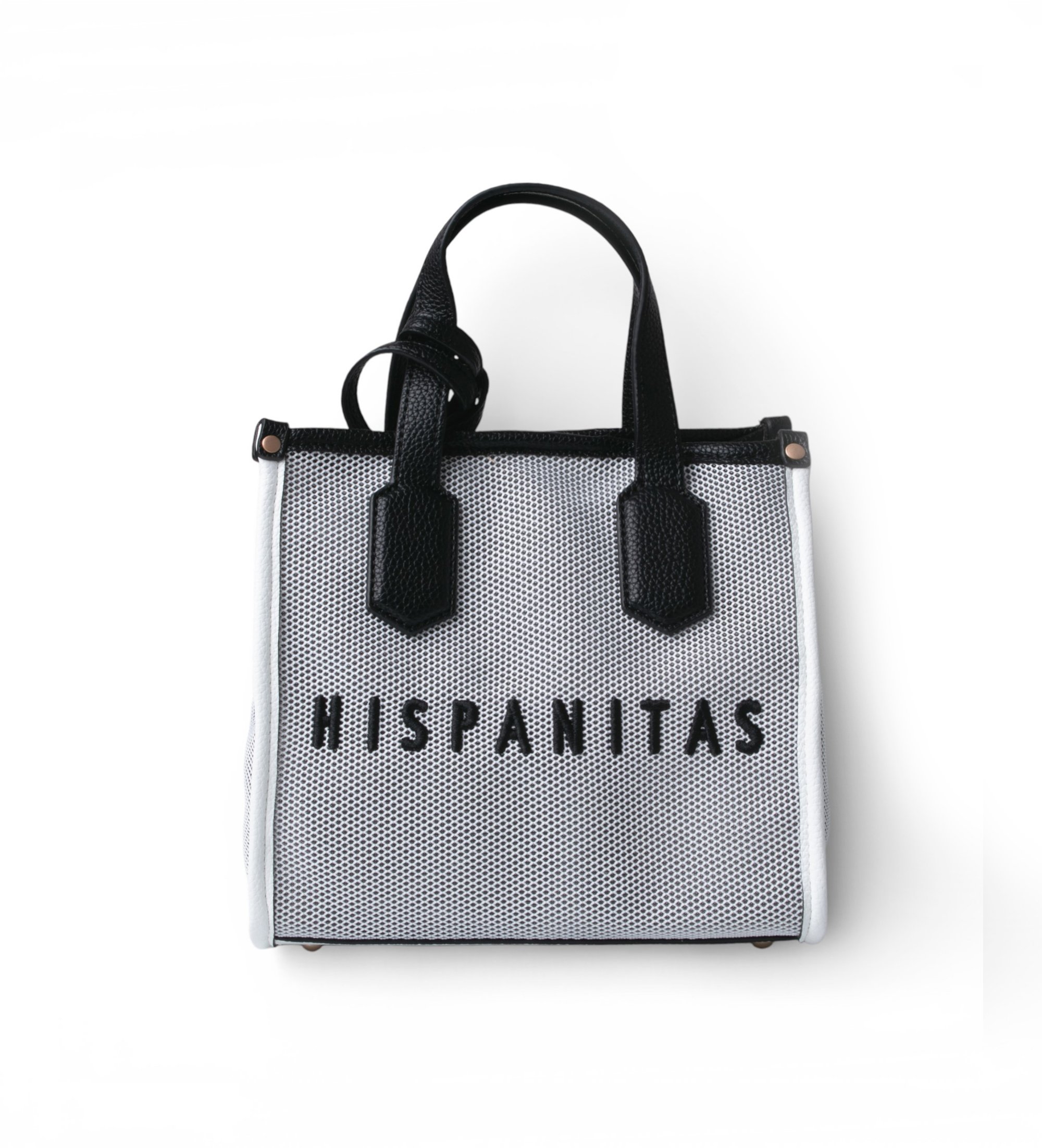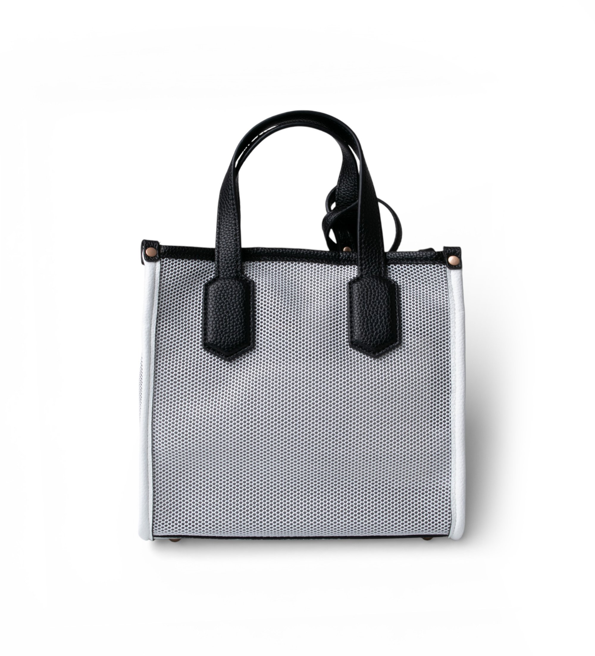 Saco de compras pequeno com um design leve e contemporâneo, ideal para um estilo casual e versátil. O seu acabamento em grelha e as suas opções de utilização fazem dela um acessório prático e funcional.