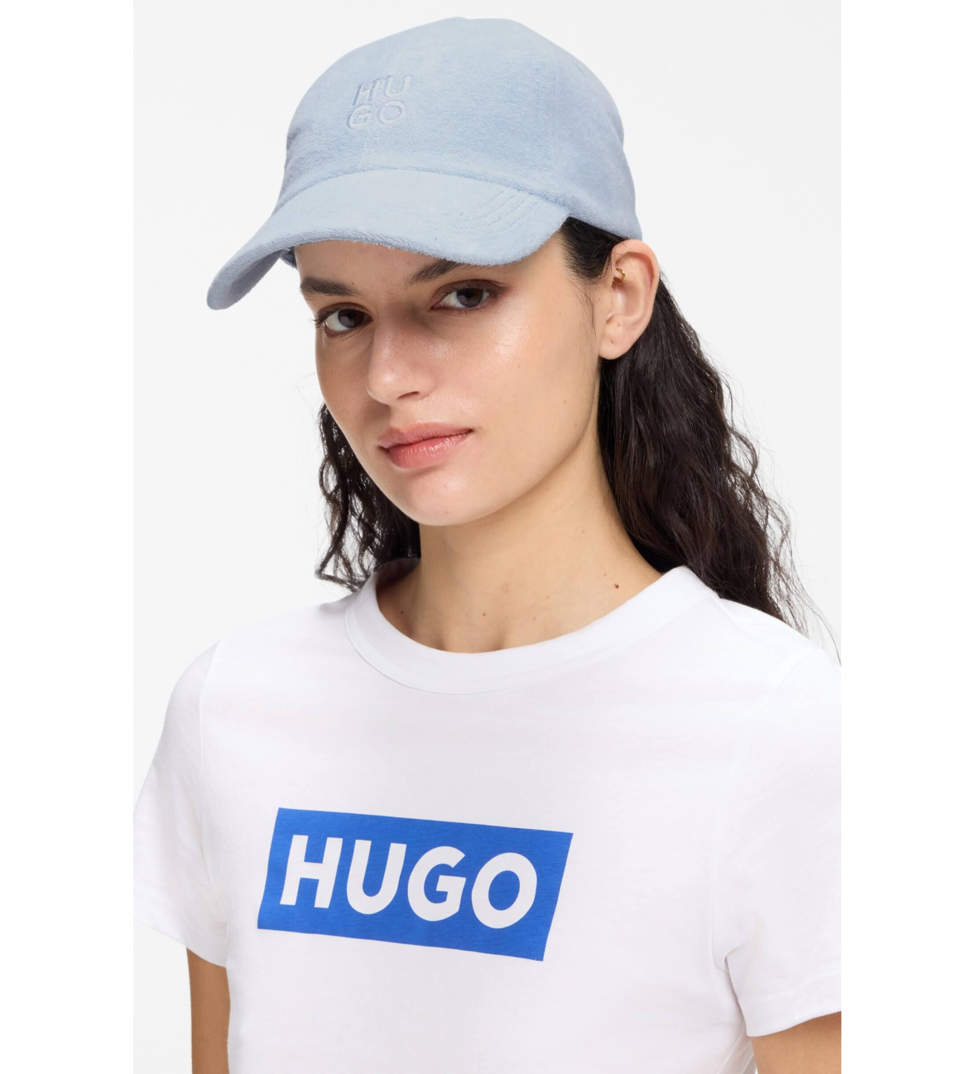 Este boné HUGO Woman ajustável para um ajuste perfeito é confeccionado em malha polar de toque suave com algodão. Logótipo bordado e empilhado.