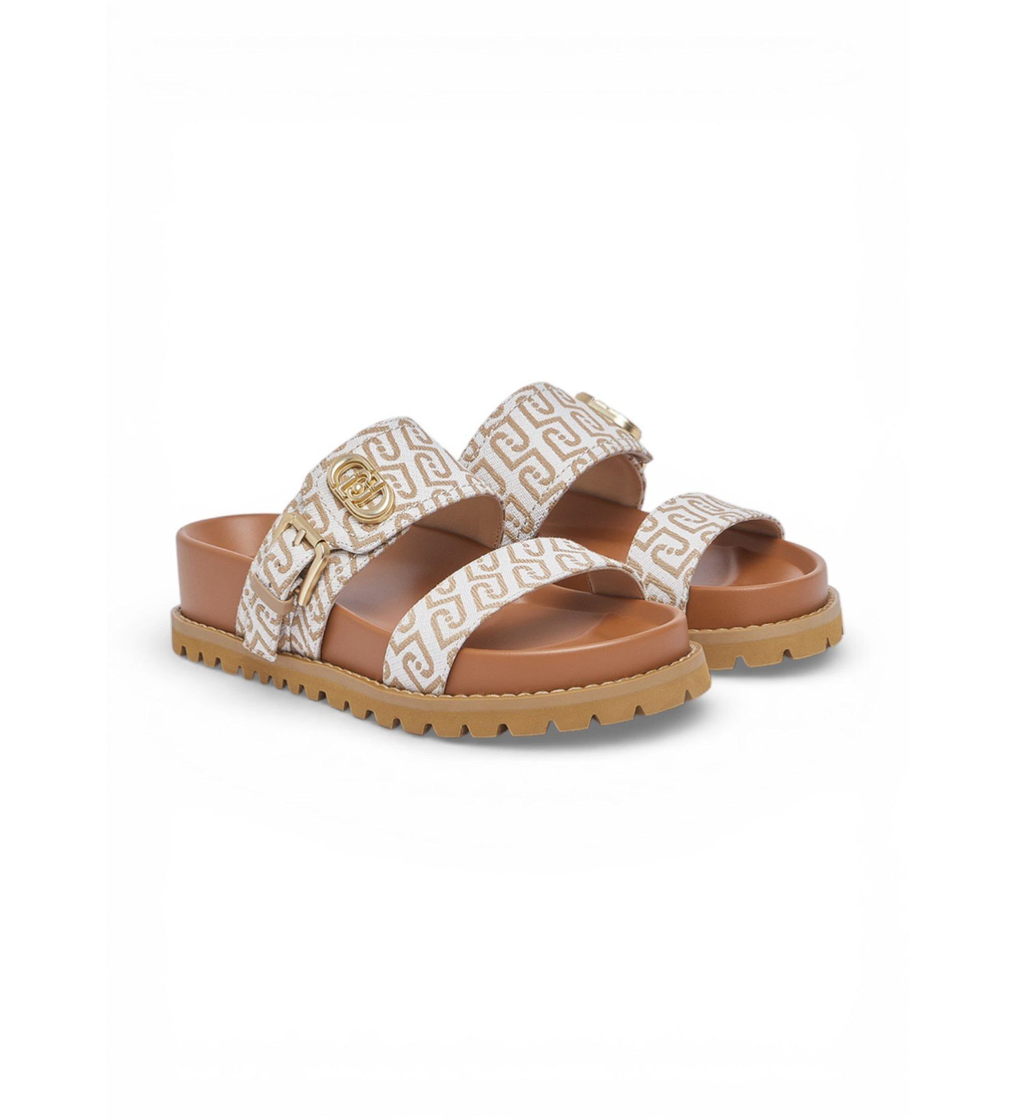 Estas sandálias de tiras em jacquard com monograma combinam estilo urbano com conforto funcional. O tecido jacquard com monograma distintivo e o logótipo metálico conferem uma identidade de marca sofisticada, enquanto a tira de fivela ajustável garante um ajuste personalizado. O fussbett anatómico e a sola de borracha serrilhada de 4,5 cm oferecem conforto e estabilidade, tornando estas sandálias a escolha perfeita para o uso diário com um toque de luxo casual.