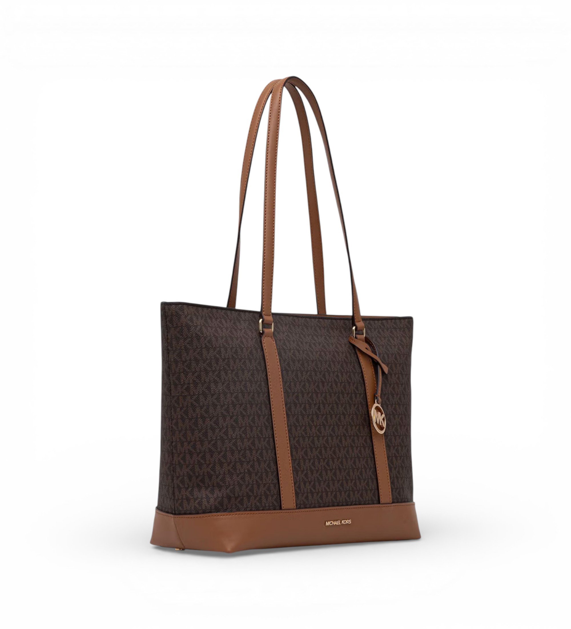 Saco grande em lona com o inconfundível monograma MK em toda a volta, com acabamento e base em pele lisa. A combinação perfeita entre o emblemático estampado de assinatura e os detalhes em pele que conferem estrutura e sofisticação. Uma peça de afirmação que transcende as tendências e se estabelece como uma referência para o estilo contemporâneo.