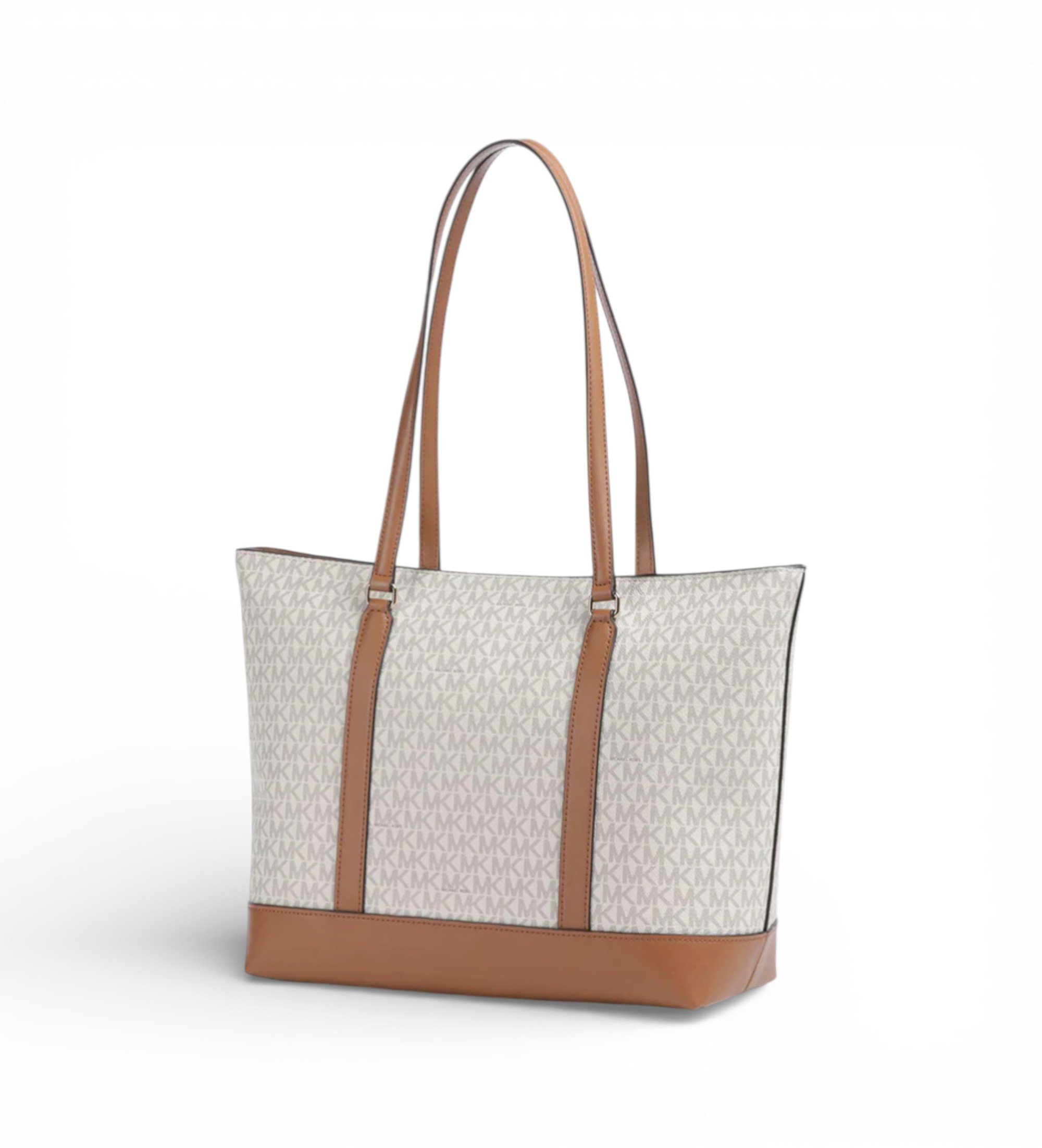 Saco grande em lona com o inconfundível monograma MK em toda a volta, com acabamento e base em pele lisa. A combinação perfeita entre o emblemático estampado de assinatura e os detalhes em pele que conferem estrutura e sofisticação. Uma peça de afirmação que transcende as tendências e se estabelece como uma referência para o estilo contemporâneo.