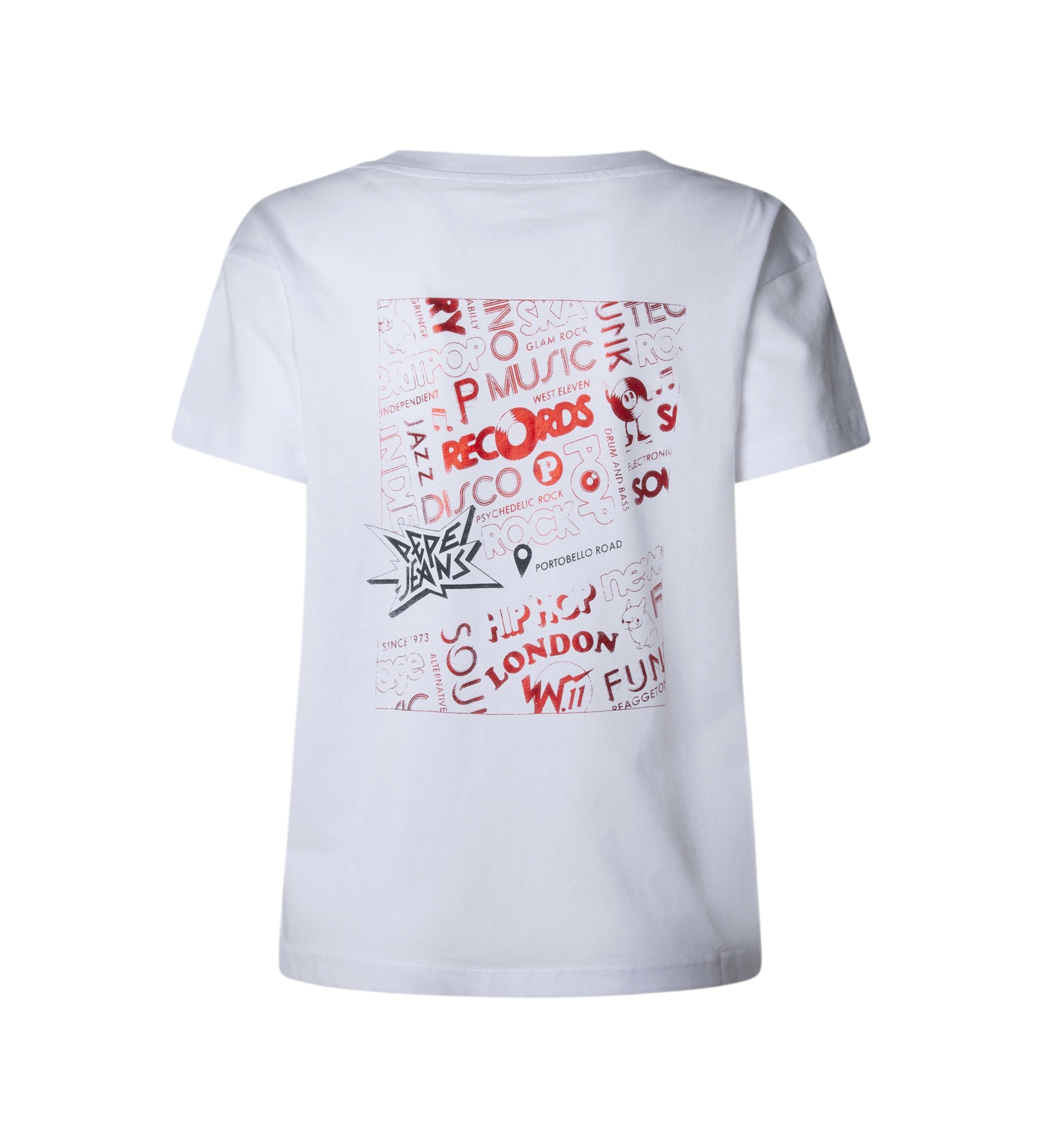 Esta T-shirt é um elemento básico com estilo para o guarda-roupa de qualquer mulher. Com um design de gola redonda e mangas curtas, é ideal para um visual descontraído e casual. Apresenta uma impressão discreta no peito e uma impressão maior nas costas, o que lhe confere um toque moderno e distinto.