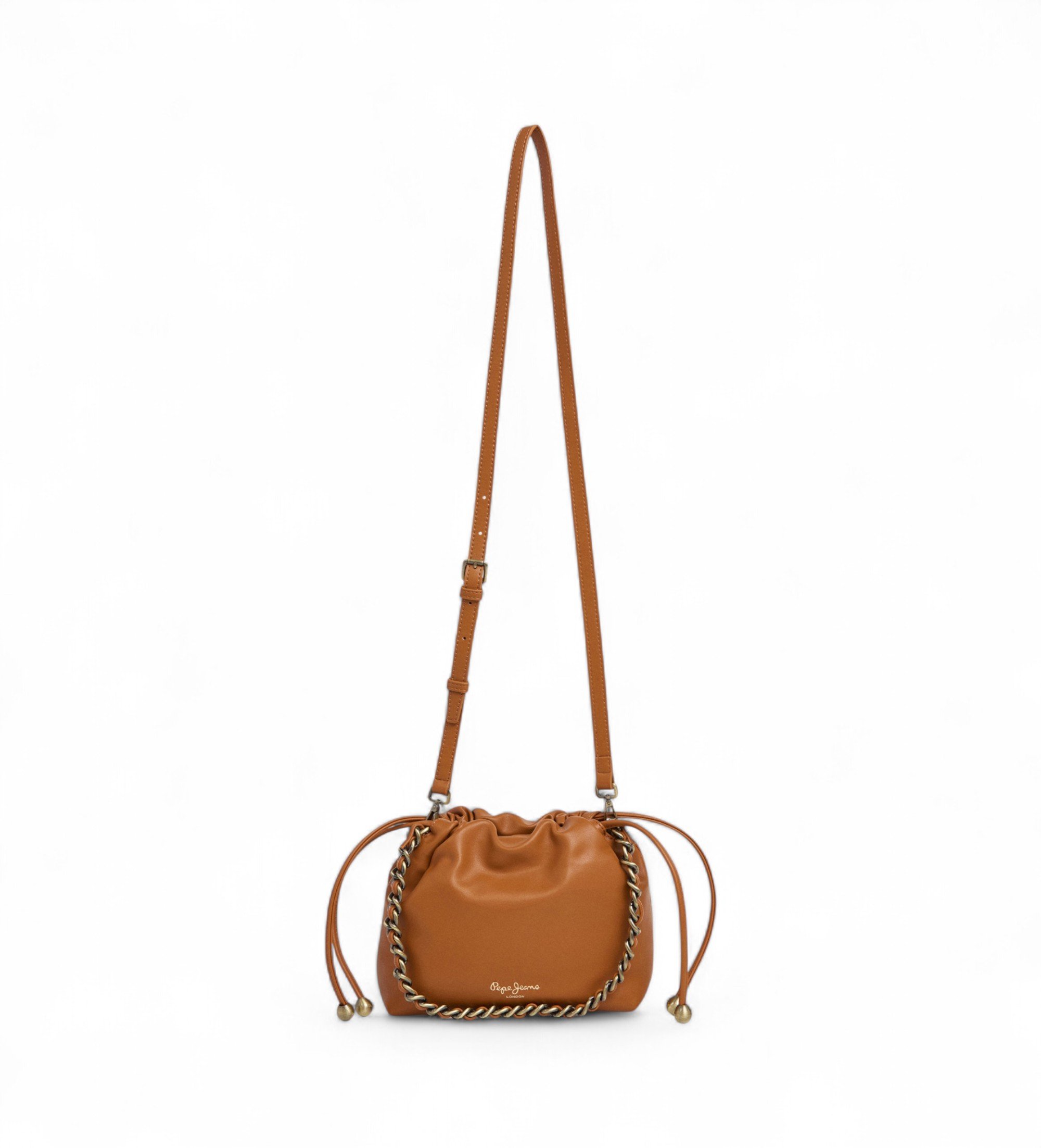 Saco Hobo com fecho magnético oculto e cordão ajustável. Inclui uma pega curta em corrente metálica, uma alça de ombro ajustável, mosquetões personalizados, dois bolsos interiores e impressão do logótipo clássico na frente.