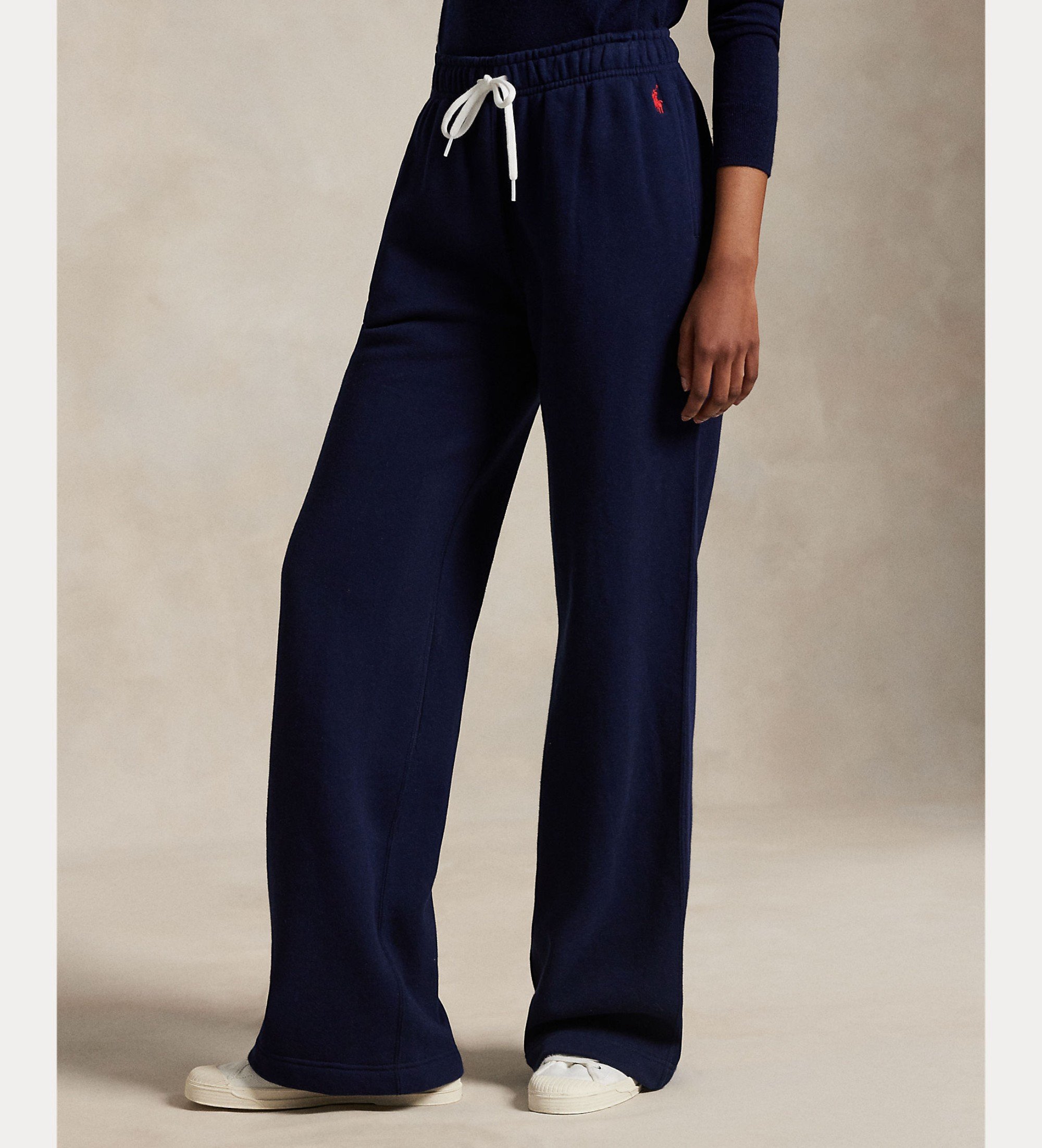 Estas calças de fato de treino com cordão, confeccionadas em malha polar de algodão macio e lavadas à máquina, apresentam uma silhueta de perna larga e um bordado de cavalo exclusivo.