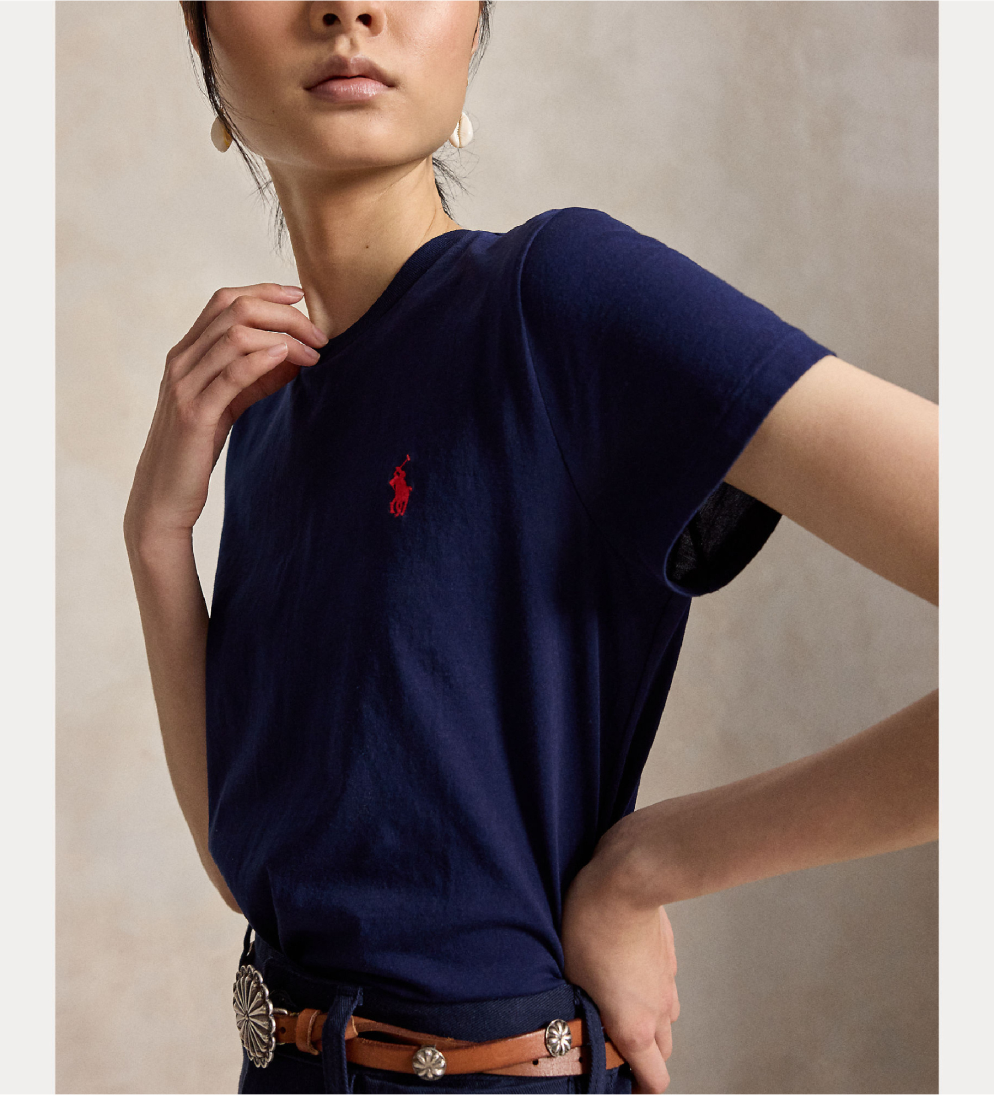 Confeccionada em jersey de algodão leve e tingido, esta T-shirt de gola redonda é um clássico Polo. Apresenta o nosso cavalo bordado no peito para um toque distinto.