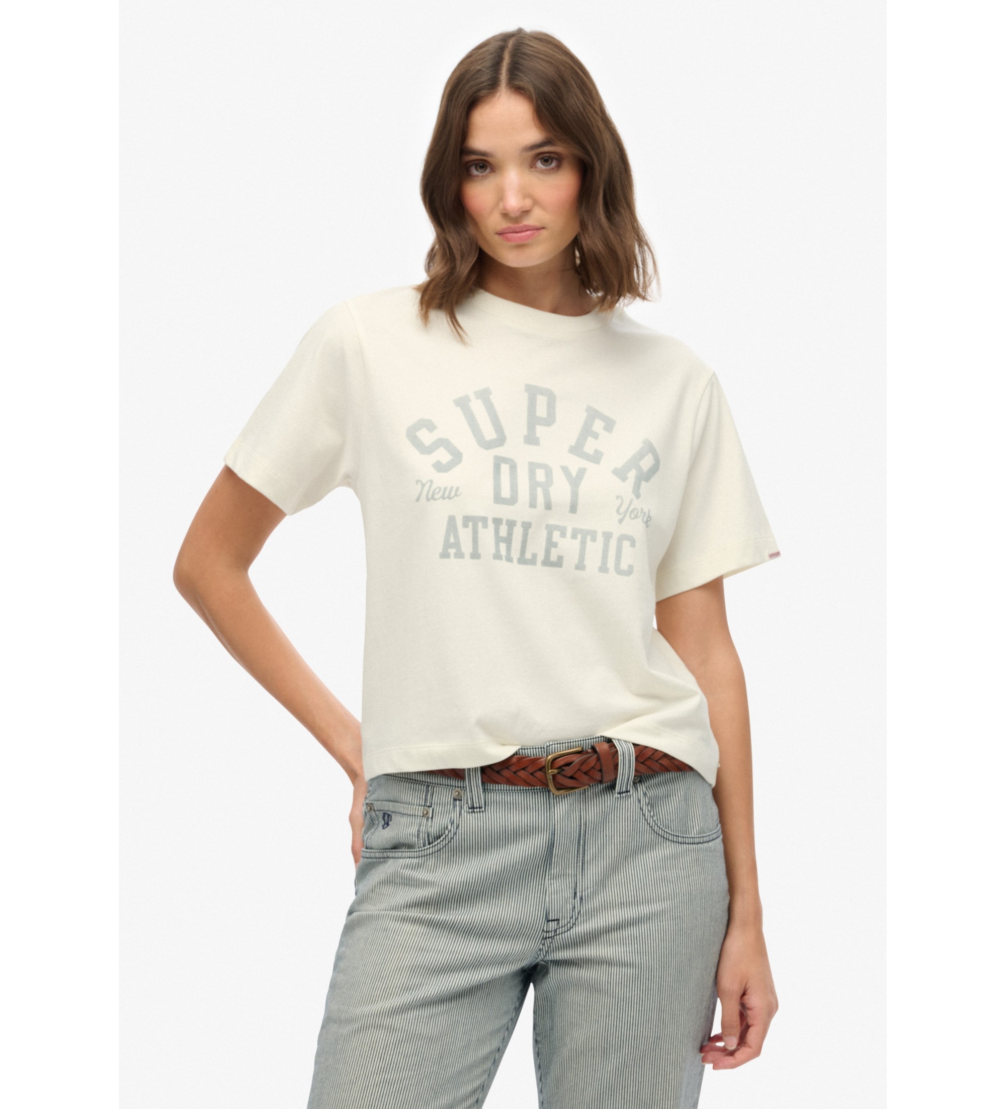 A T-shirt Athletic Essentials Loose é um básico versátil e elegante para o seu guarda-roupa. Com um corte quadrado solto e um comprimento curto, oferece liberdade de movimentos. A gola redonda canelada e o texto impresso no peito realçam o seu estilo casual. Uma etiqueta da marca na manga confere um toque distinto. A peça de vestuário perfeita para momentos de conforto e estilo.