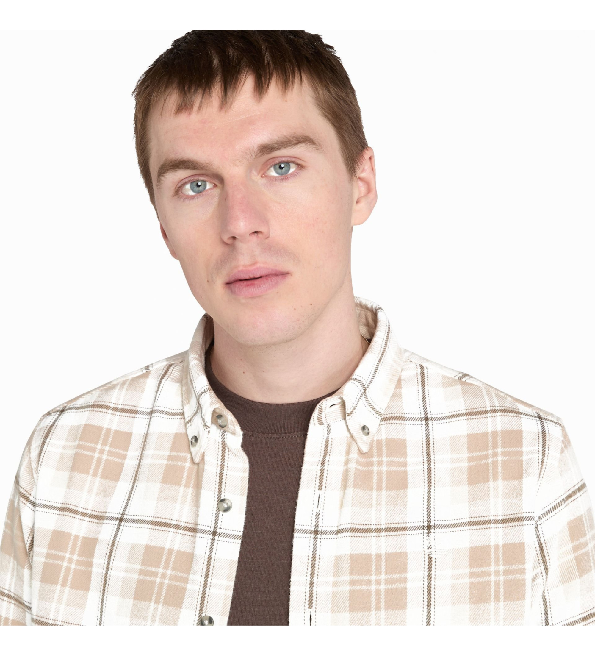 Esta camisa de flanela axadrezada para homem ajuda a proporcionar um estilo clássico com um toque suave e confortável. Fabricada em 100% algodão orgânico, com um corte normal de peso médio, apresenta um colarinho com botões, um logótipo bordado e um padrão de xadrez intemporal.