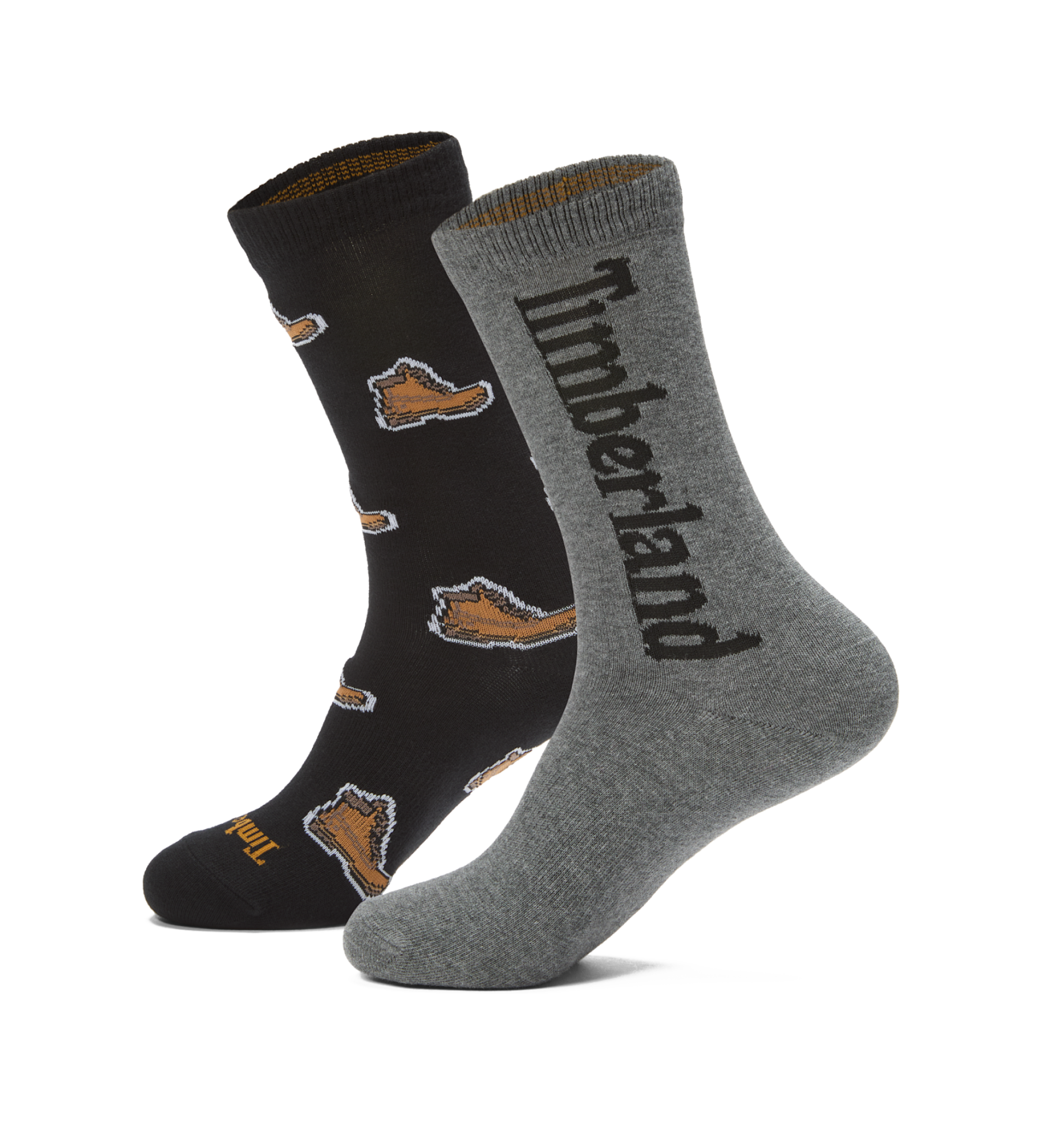 Este conjunto de 2 meias de gola redonda foi concebido para proporcionar conforto e durabilidade para o uso diário, seja com botas ou ténis. Fabricadas em tecido macio e elástico, apresentam um design com impressão de bota que presta homenagem ao estilo icónico da Timberland.