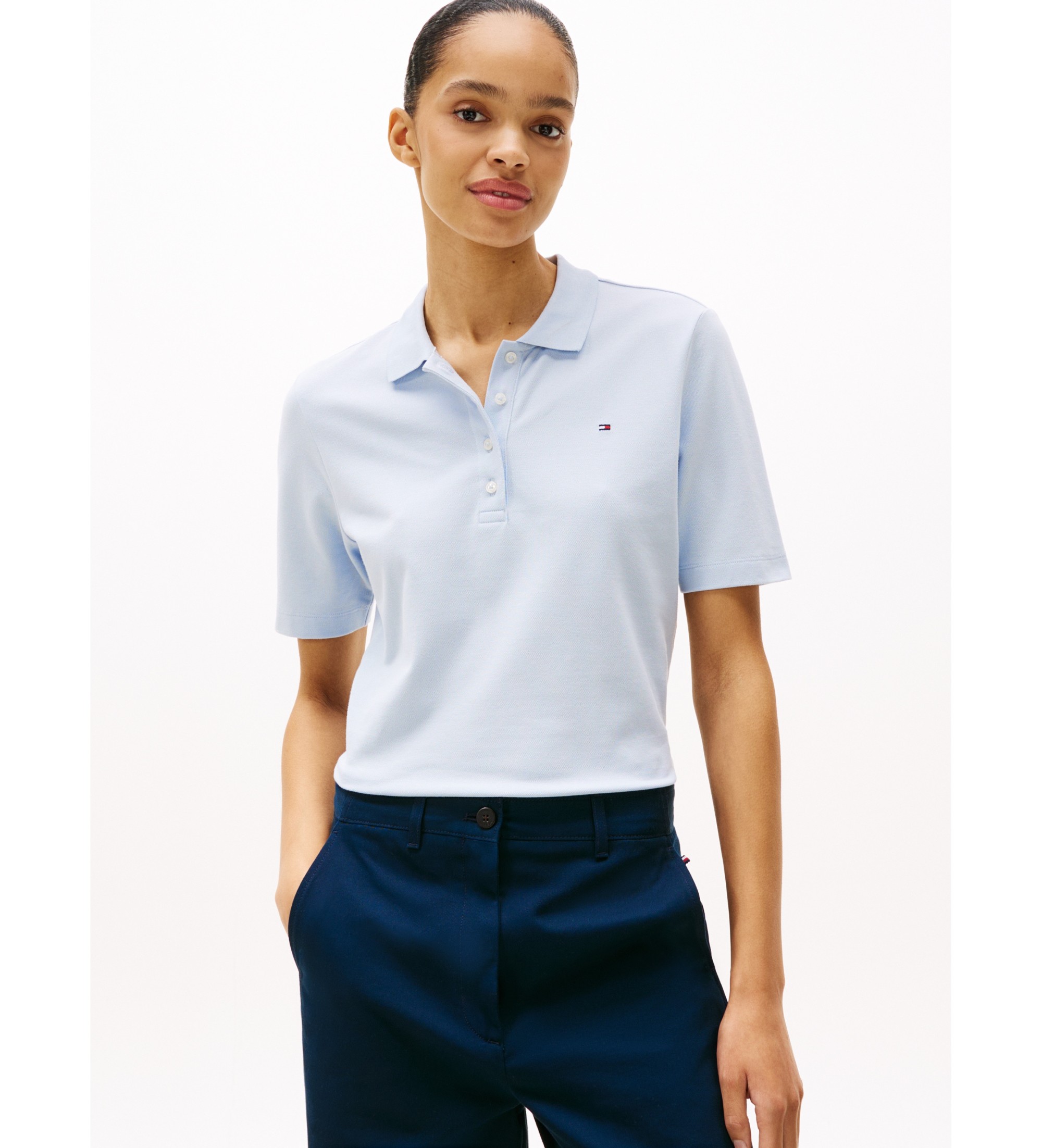Um elemento básico intemporal para o dia a dia, este polo em piqué de algodão elástico apresenta um acabamento texturado e um logótipo Tommy Hilfiger bordado.