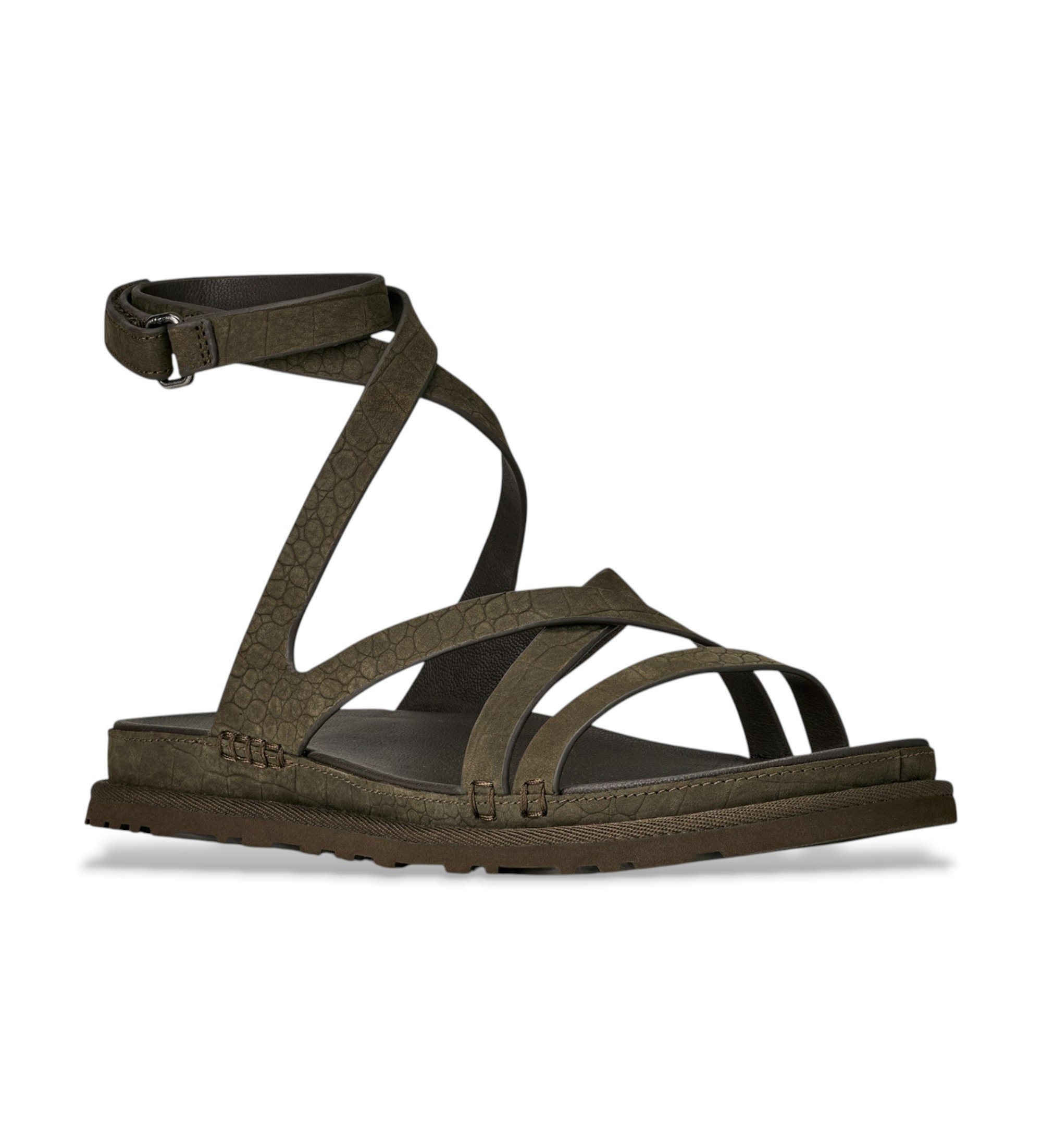 Composição: Parte superior em pele com relevo. Sola em EVA de cana de açúcar.