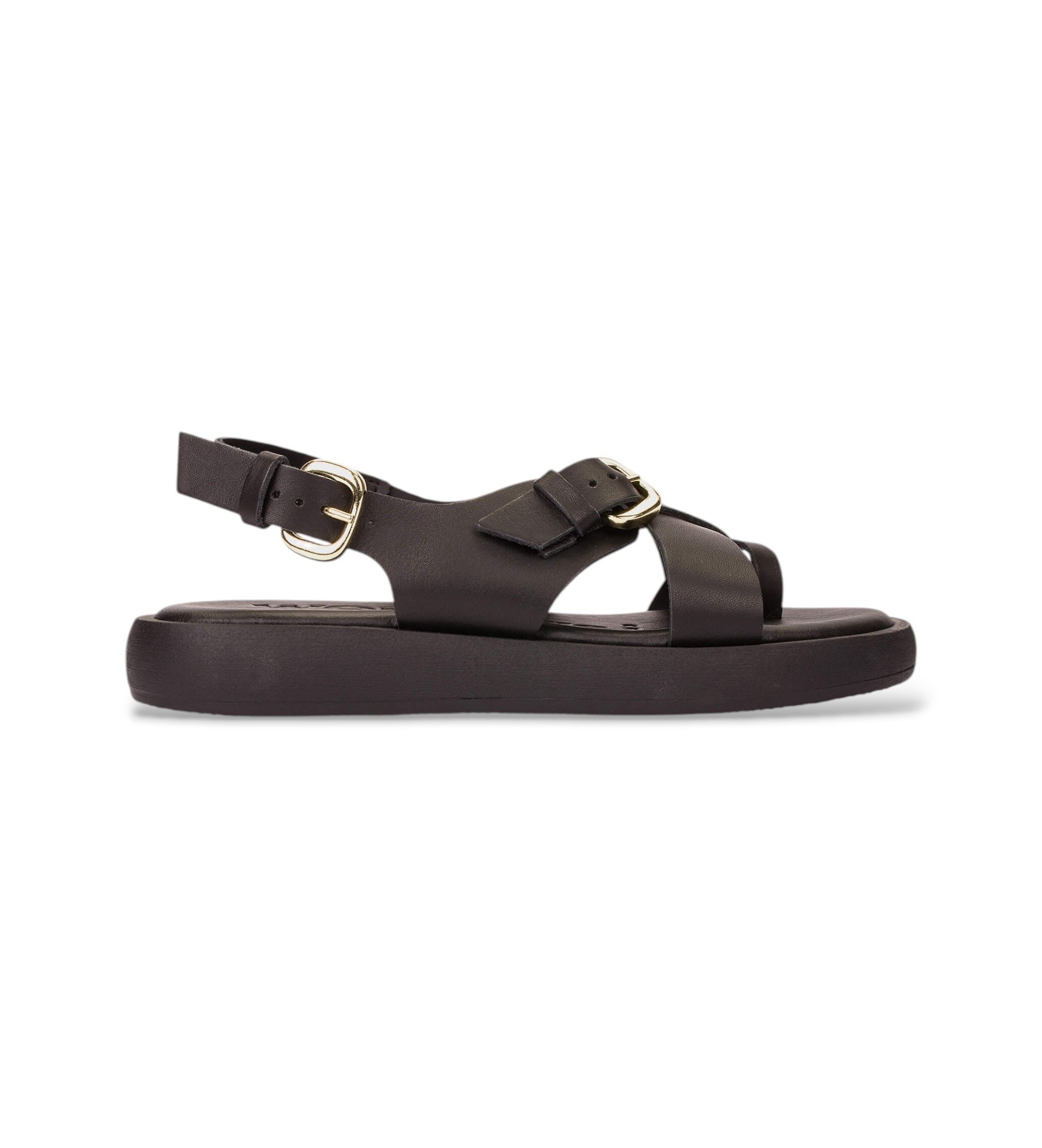 Descubra as sandálias Walk da Wonders, um design intemporal que alia a elegância minimalista ao conforto quotidiano. Estas sandálias rasas em preto são perfeitas para quem procura um calçado versátil, confortável e sofisticado que funcione em qualquer ocasião. As suas fivelas douradas e a sua plataforma ergonómica fazem delas a escolha ideal para caminhar com estilo durante todo o dia.
