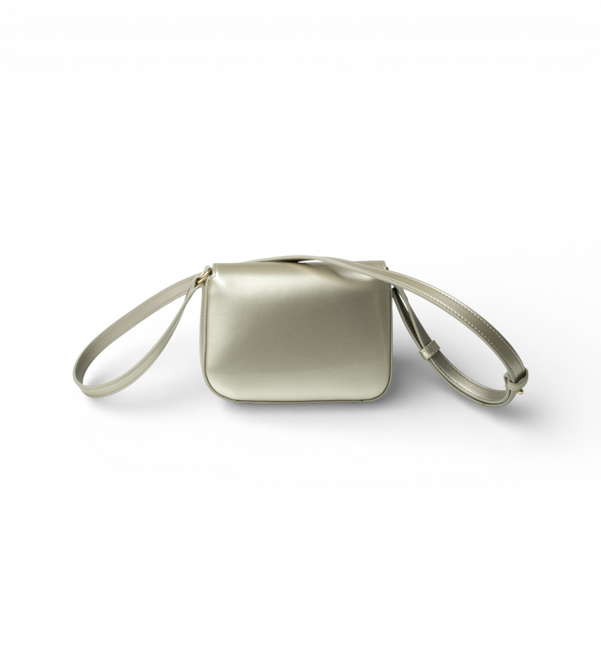 Izdelana je iz lakastega usnja, ki daje nežen lesk in sodoben videz. Na sprednji strani zapenjala je značilen logotip AX, ki dodaja identiteto in značaj. Zaradi tankega, nastavljivega traku jo lahko nosite čez ramo ali križem čez telo ter jo tako prilagodite različnim slogom in priložnostim.
