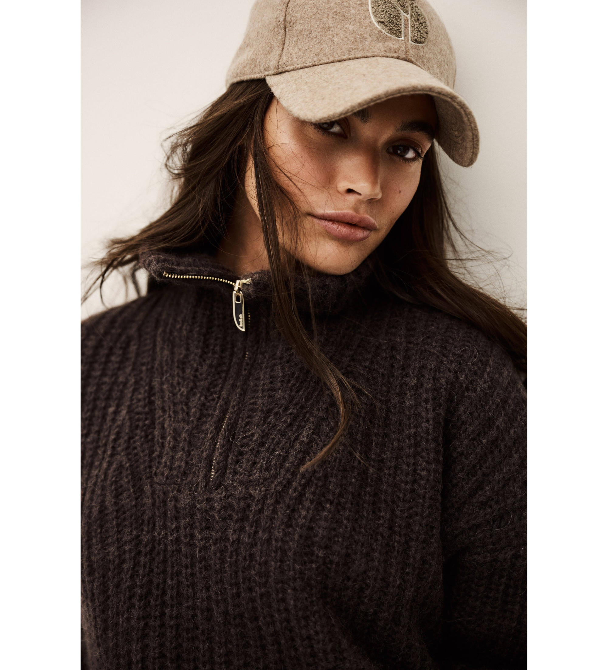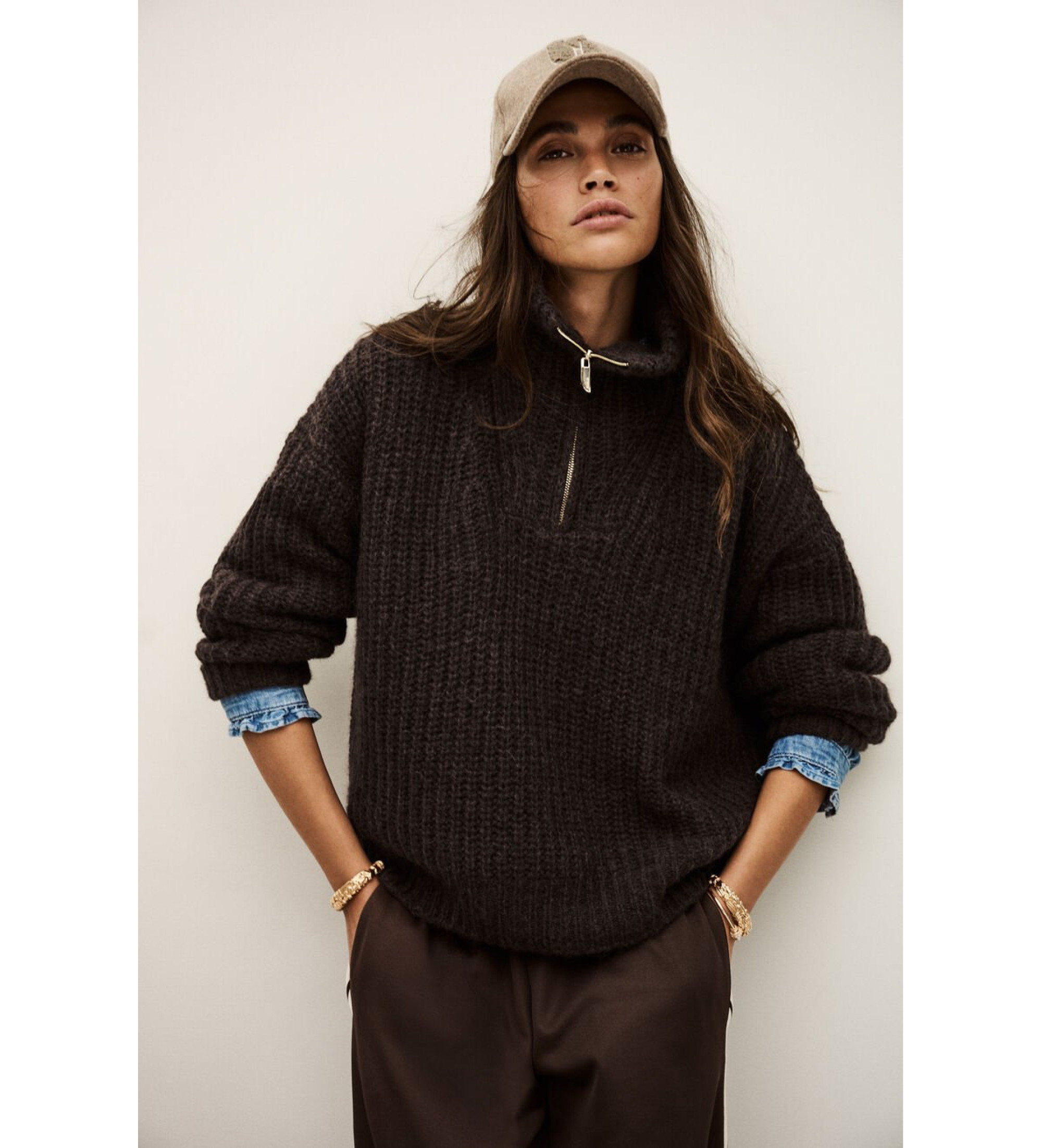 Pulover z zadrgo je praktičen mestni slog, ki se zlahka prilagodi različnim slogom. Njegova funkcionalna zasnova vam omogoča, da prilagodite izrez glede na priložnost, kar mu doda dinamičen, sodoben pridih. Idealen je za priložnostne videze med sezono ali kot srednji sloj v hladnih dneh.