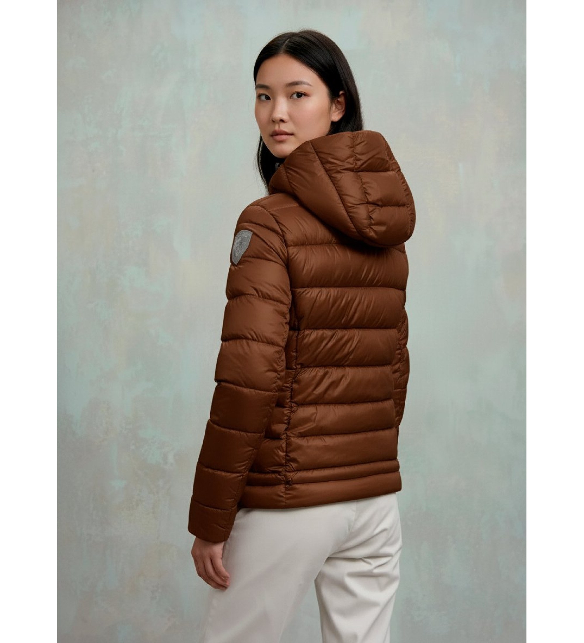 Zimska jakna iz vodoodbojnega najlona z mikrodrgnjenim vzorcem. Trajnostno prešita, z učinkom hujšanja v modnih barvah.