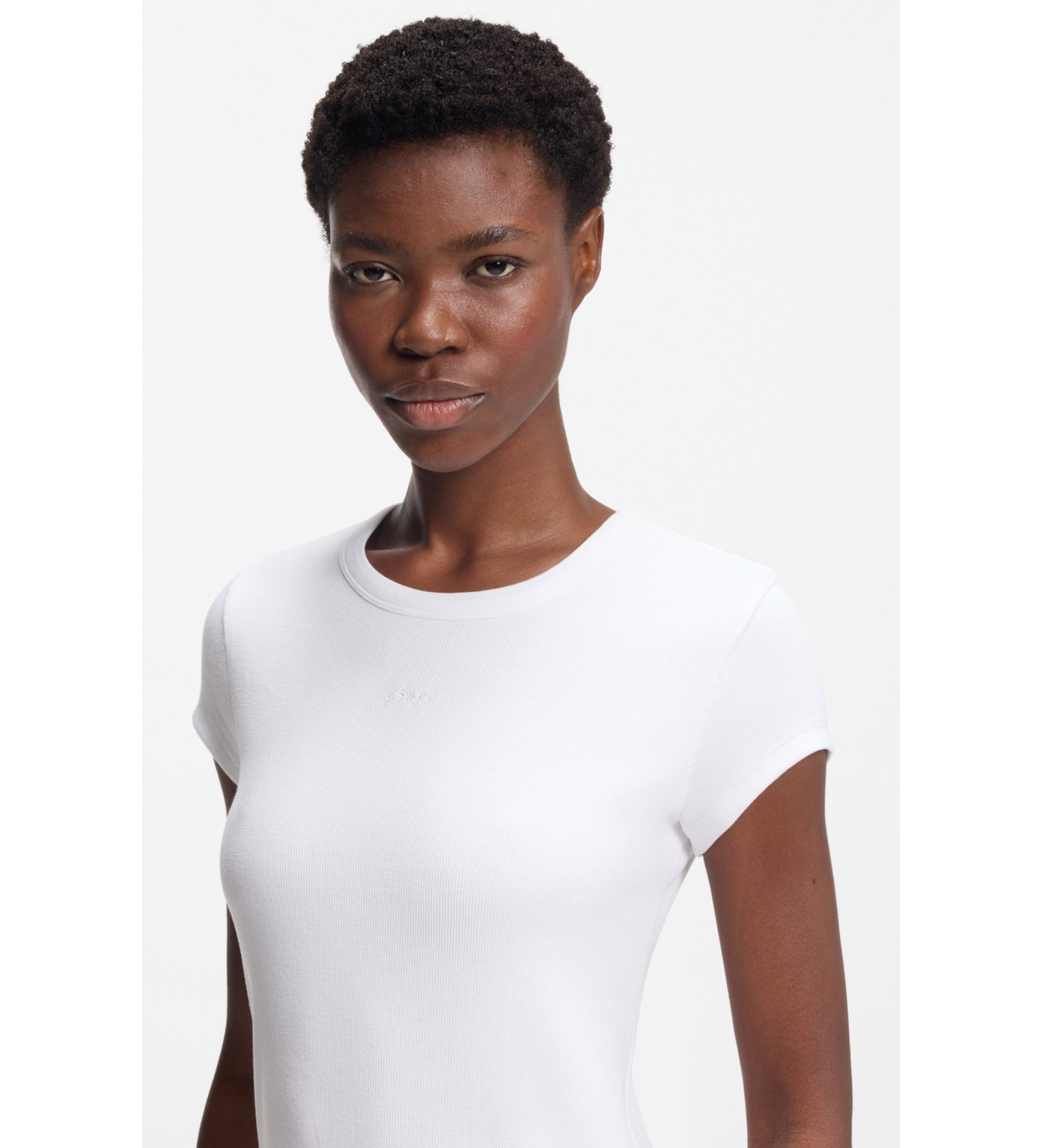 Majica BOSS Womenswear z elegantnimi kapičastimi rokavi je idealna za vsakodnevni videz. Iz mehkega raztegljivega bombaža. Vezen kaligrafiran logotip.