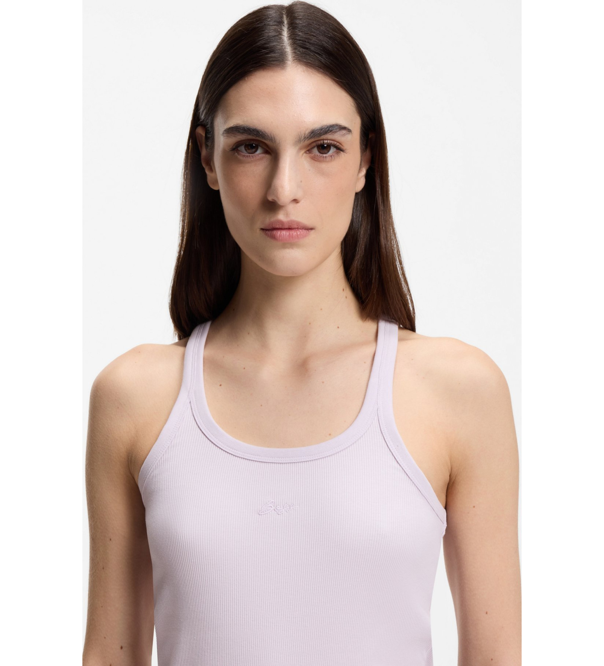 Ta laskava majica BOSS Womenswear iz rebrastega bombaža z dodatkom raztegljivosti za udobje je nujna za vsak dan. Vezen kaligrafiran logotip.