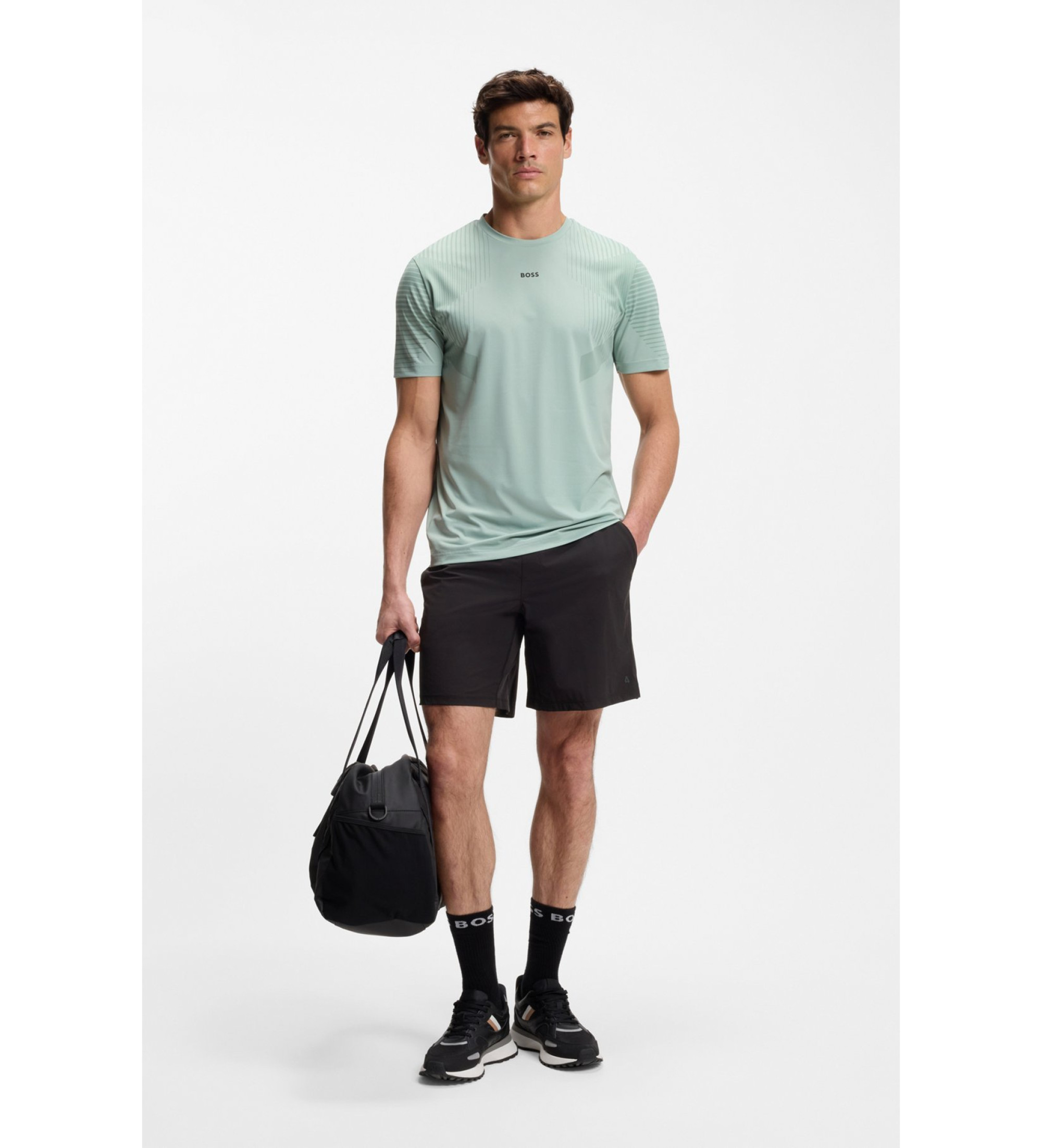 Kratke hlače BOSS Menswear z vodoodbojnim učinkom so izdelane iz izjemno raztegljive tkanine z udobnim nastavljivim pasom. Hitro sušenje. Atletska dolžina nog.