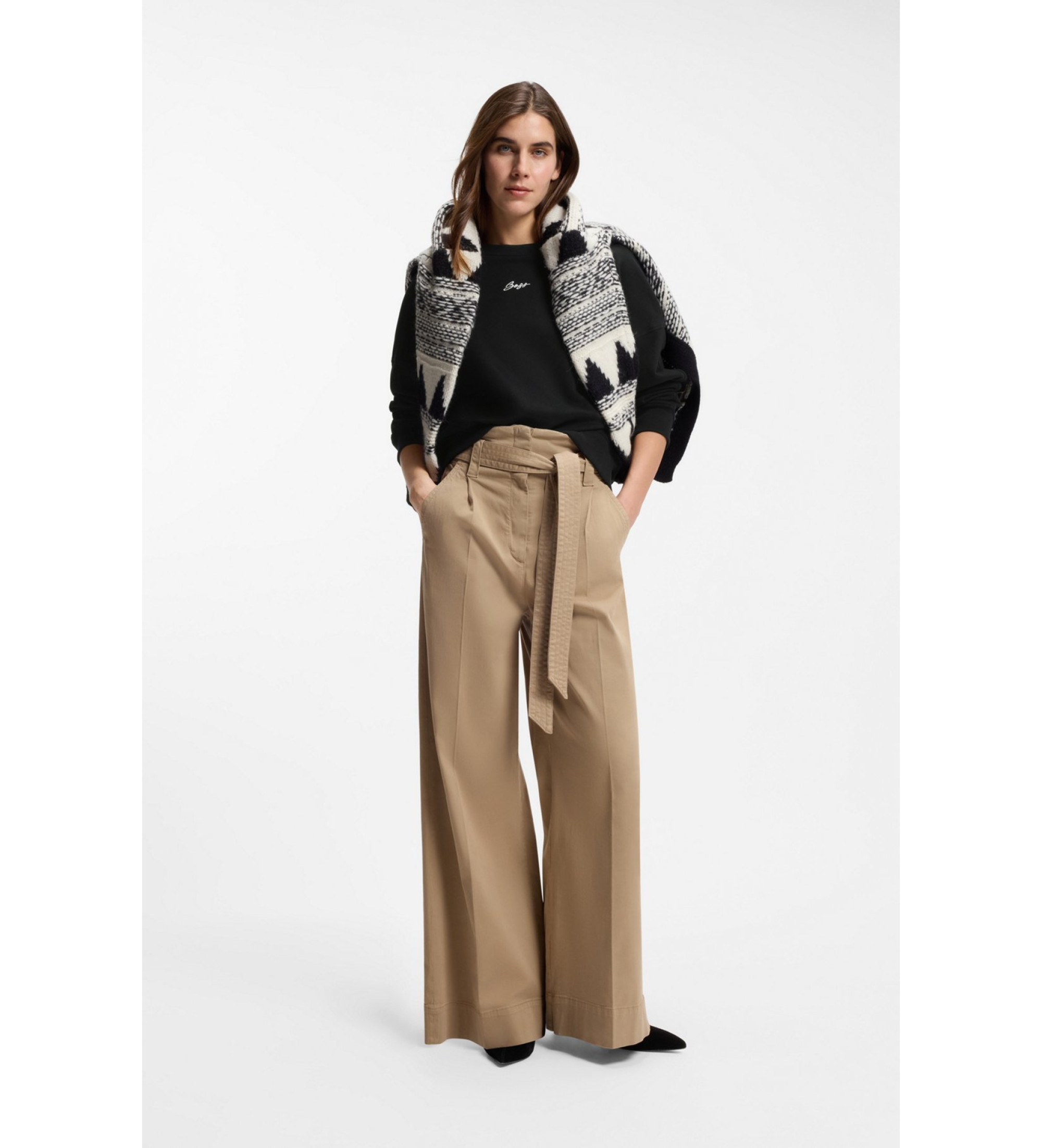 Ta udobna jopa BOSS Womenswear s spuščenimi rameni je izdelana iz žametnega bombažnega flisa za lahkotno oblačenje. Diskreten, kaligrafiran logotip je subtilen.