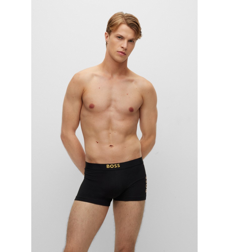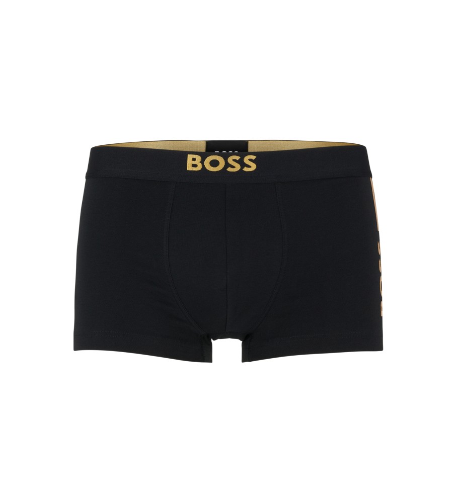 Izrazite bokserice BOSS. Te boksarice srednjega kroga so iz raztegljivega bombaža z enojnim jerseyjem, z dodatki blagovne znamke s kovinskim učinkom in ujemajočo se črto na levi nogi. Na sredini pasu so dodani dodatni detajli z blagovno znamko.