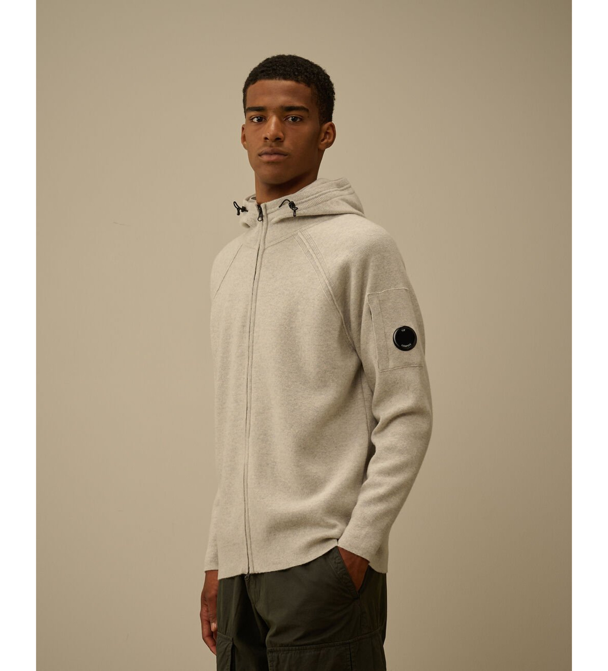 Moški sivi pleteni pulover v slogu jopice z zadrgo. Izdelan je iz mešanice volne (80?%) in poliamida (20?%) za toploto, udobje in trpežnost. Vsestranski kos z značilnim urbanim slogom podjetja C.P. Company.