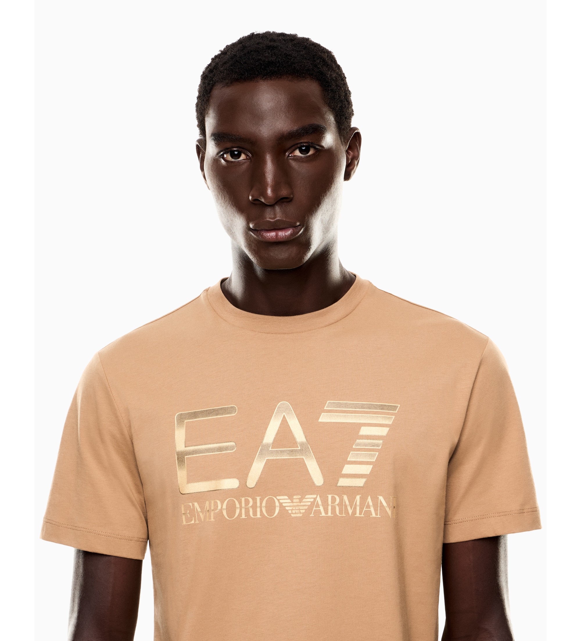 Bombažna majica s posadko in vratom običajnega kroja. Model je personaliziran z maksilogotipom EA7 na prsih z neonskim učinkom, ki spominja na druga oblačila iz linije Logo Series. Logotip EA7 je prava zvezda serije Logo Series, katere interpretacija je to sezono vsestranska, saj se izmenjujejo ton v tonu, retro motivi in mini formati. Udobna in vsestranska oblačila, kot nalašč za trenutke prostega časa in sprostitve.